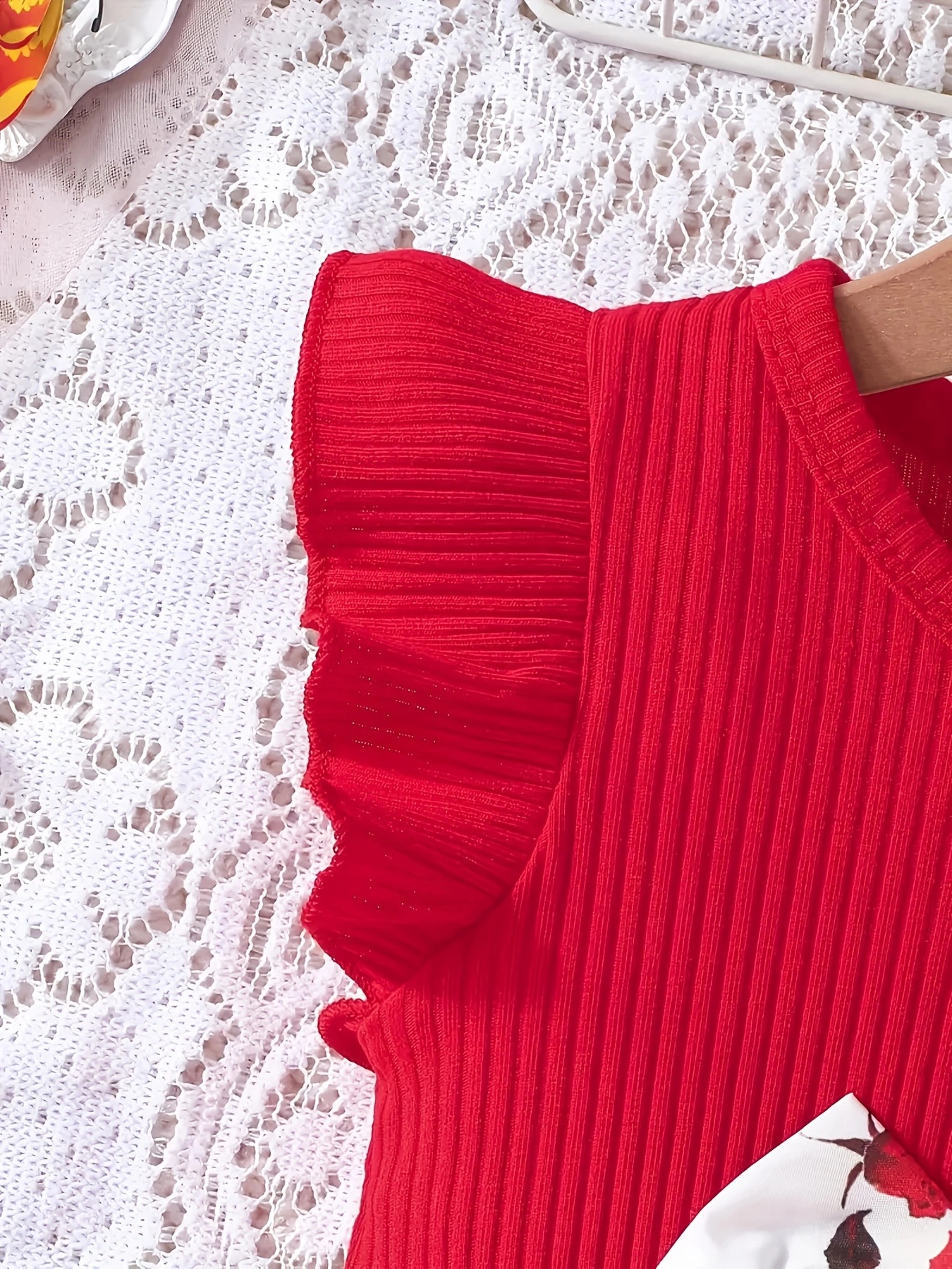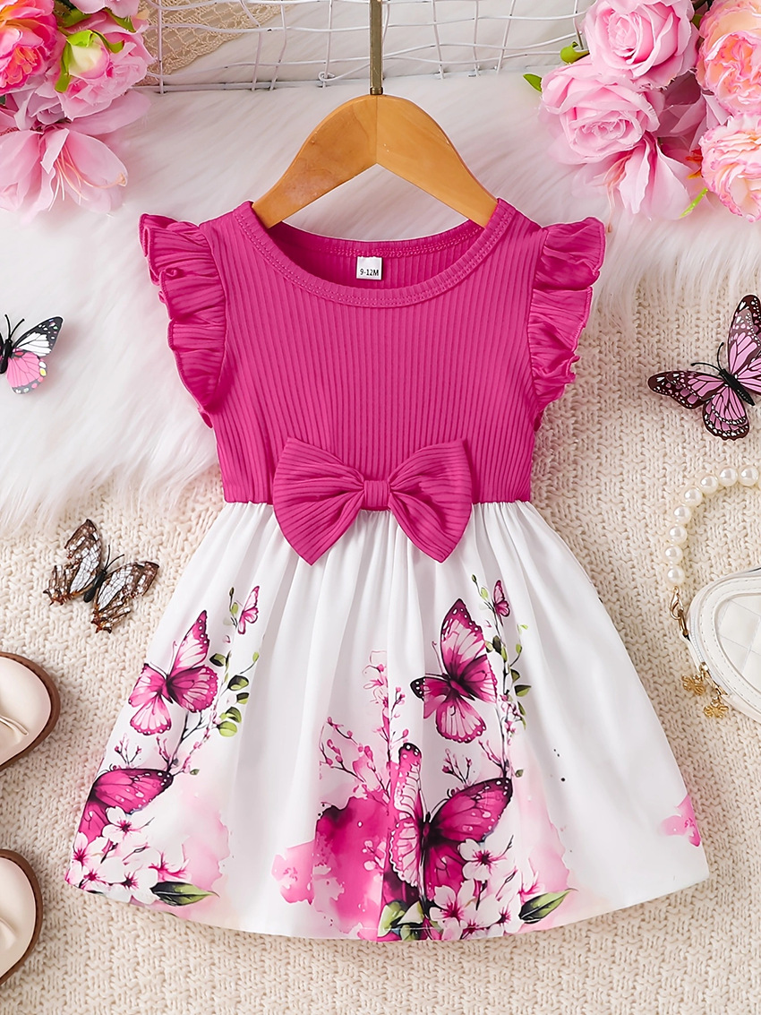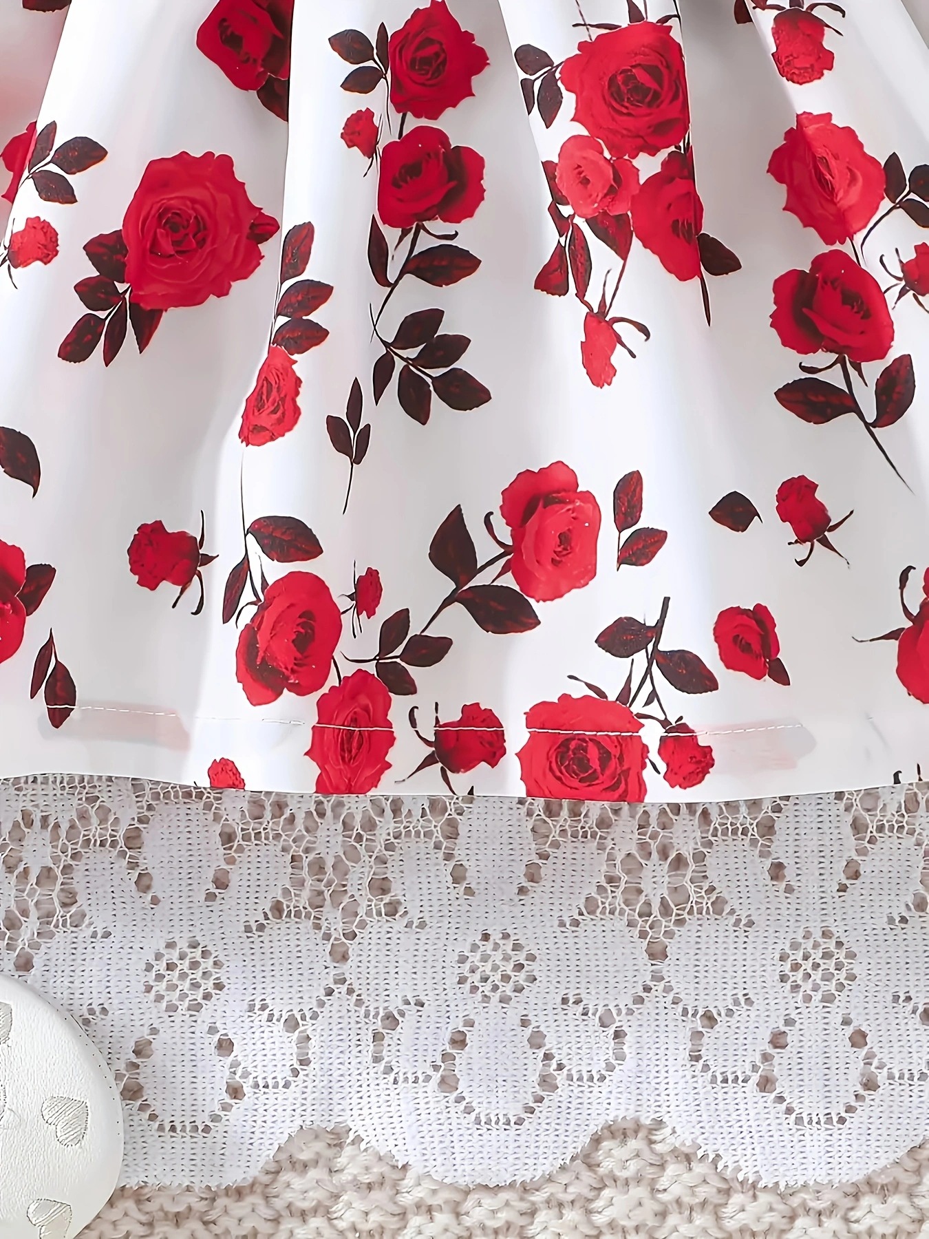 국경 INS 아기 소녀 아기 여름 비행 소매 활 바느질 장미 인쇄 원피스 트렌디