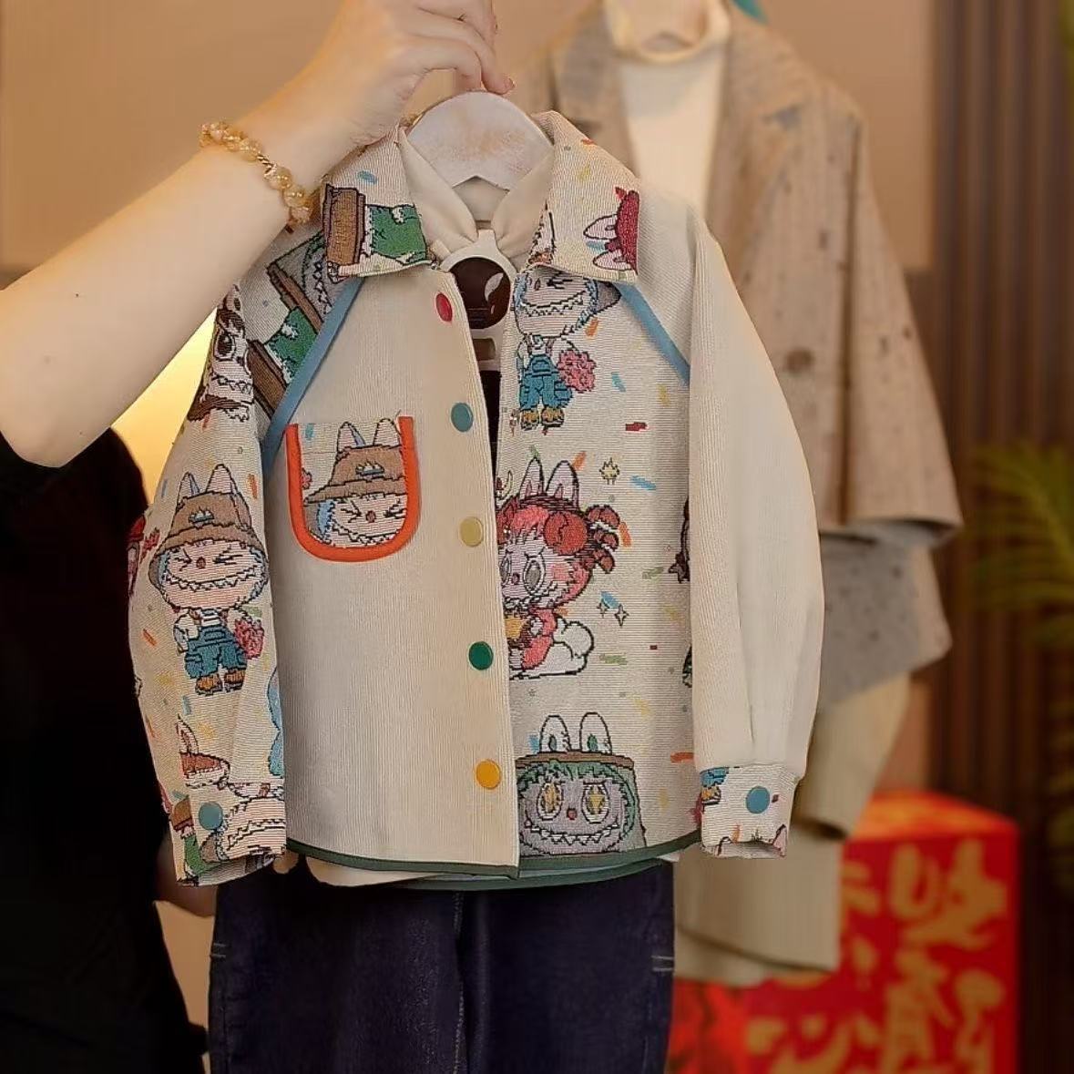 소년의 새로운 유행 어린이 재킷 어린이 자켓 봄과 가을 아기 어린이 만화 탑 낙서 2025 폭발 아동복스토어 가기