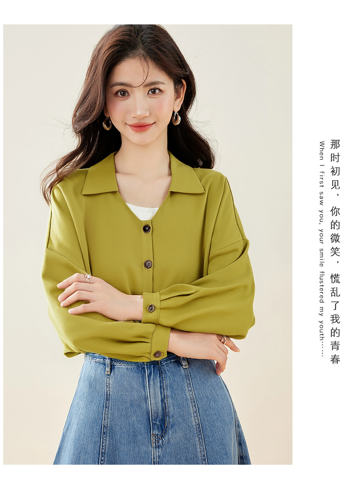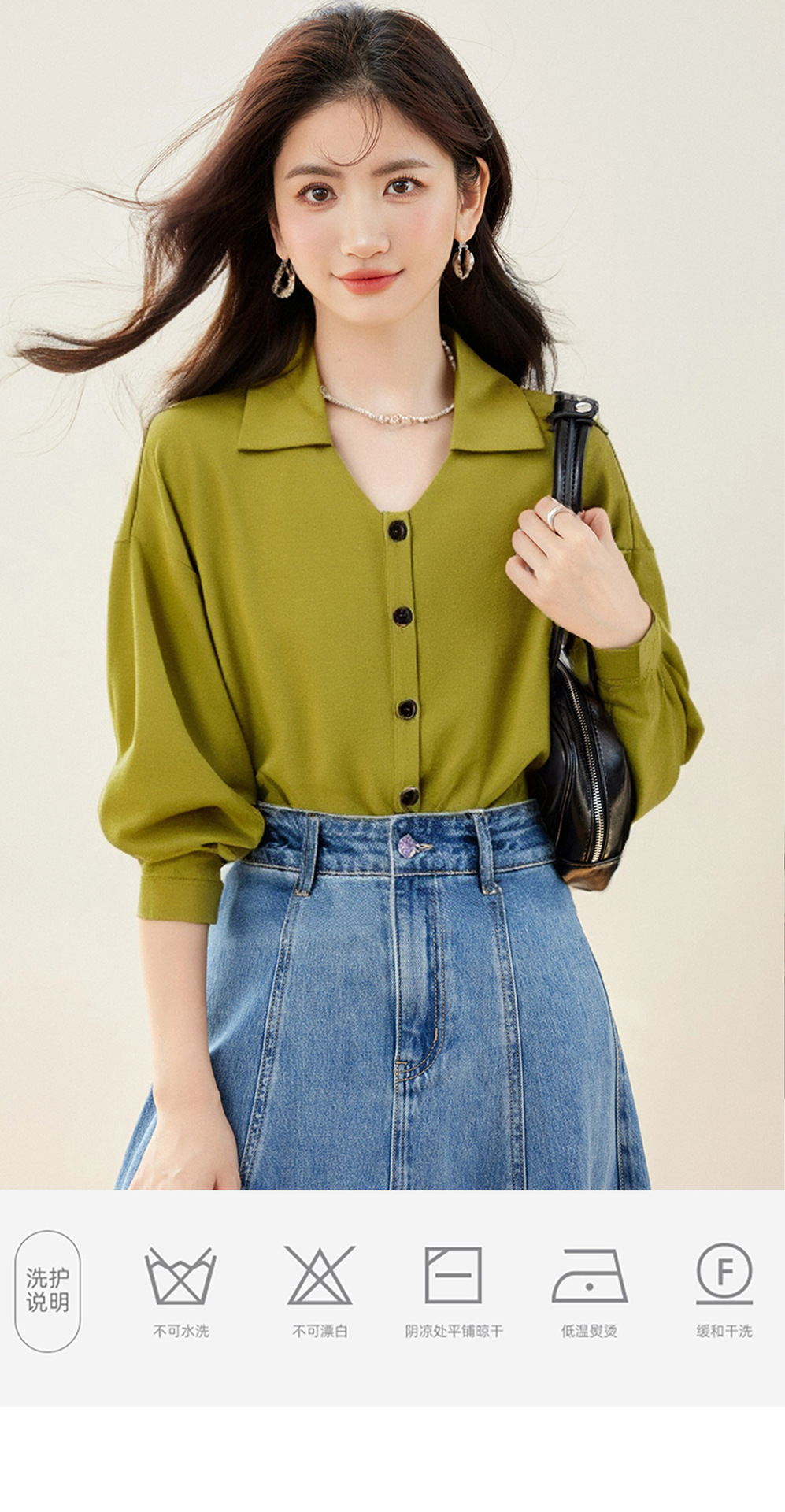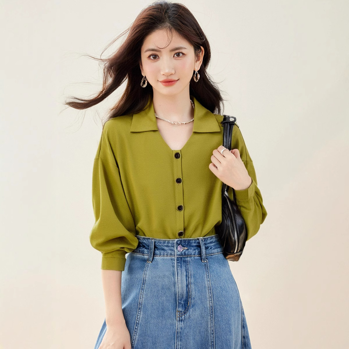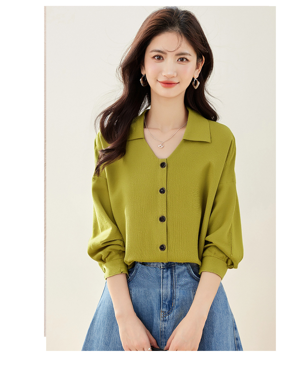 2025 년 이른 봄 새로운 우아한 통근 아보카도 그린 프랑스 시폰 탑 여성용 긴팔 엘 작은 셔츠스토어 가기