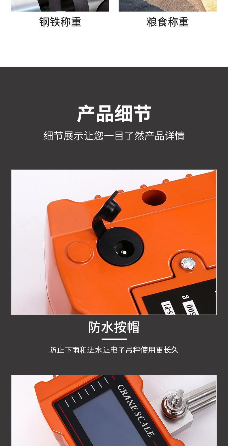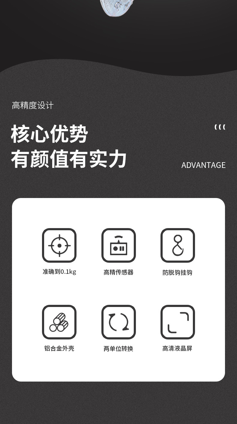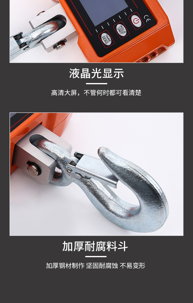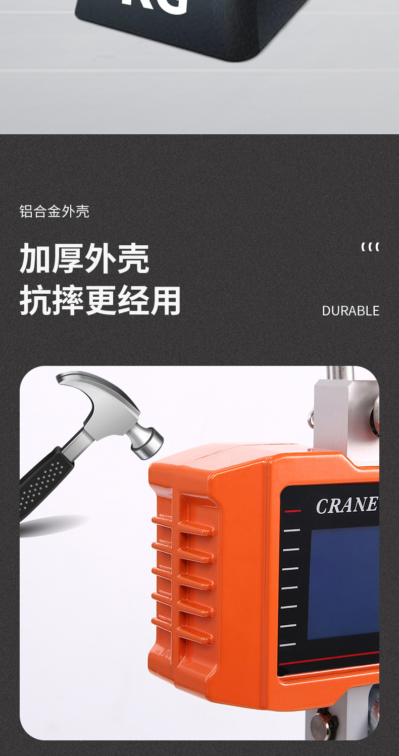 材质:精钢提手和挂钩,高精度铝制传感器,铝合金外壳