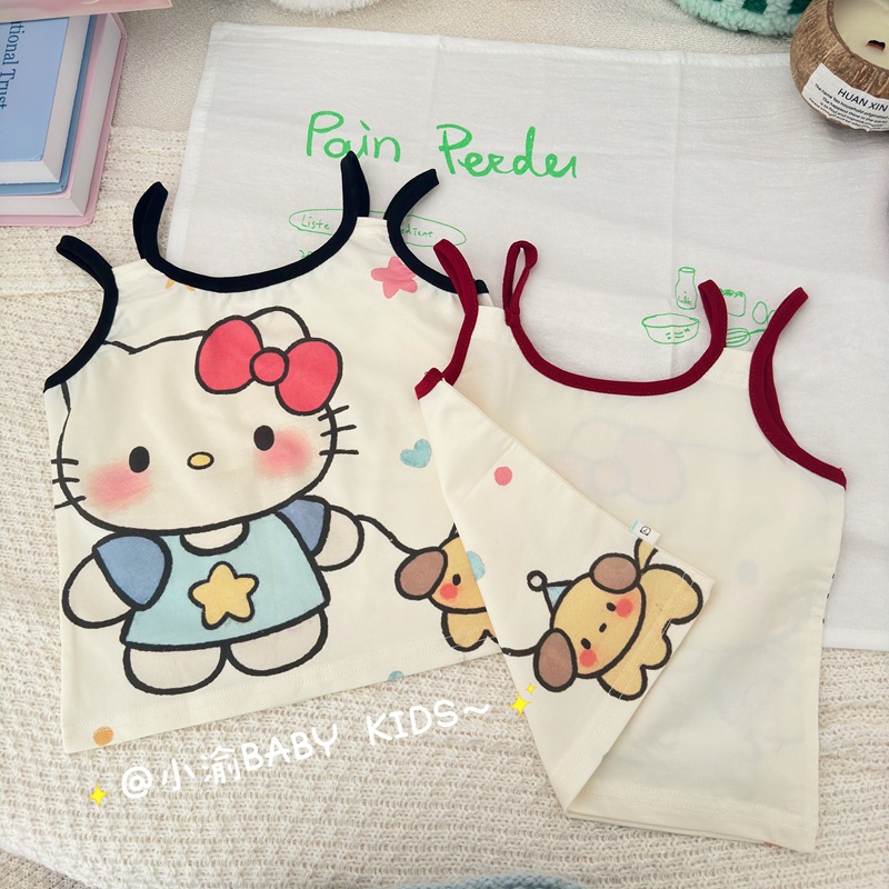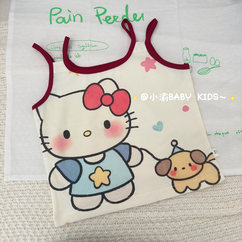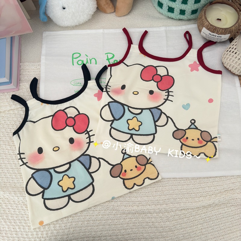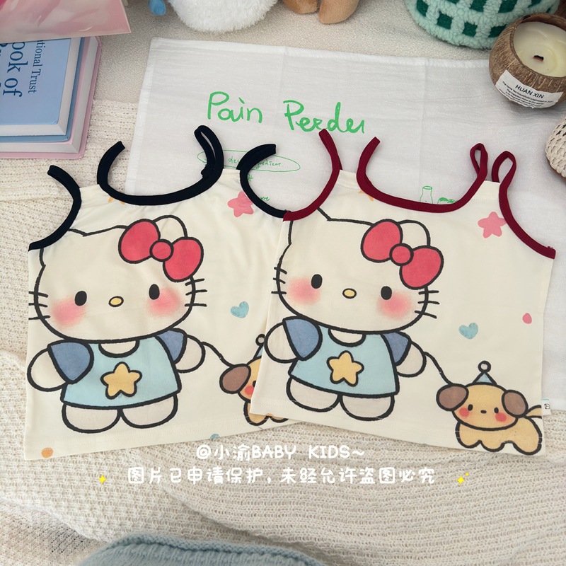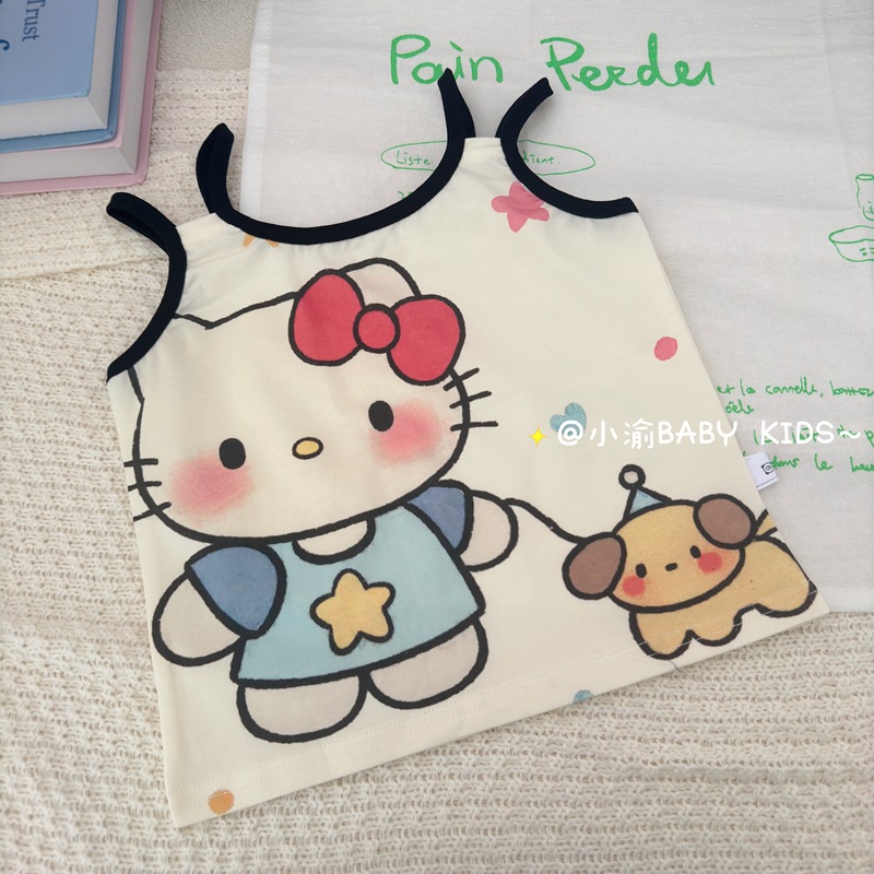 여자 카미솔 2025 여름 새로운 귀여운 만화 KT 아기 소녀의 여름 민소매 어린이 서양식스토어 가기