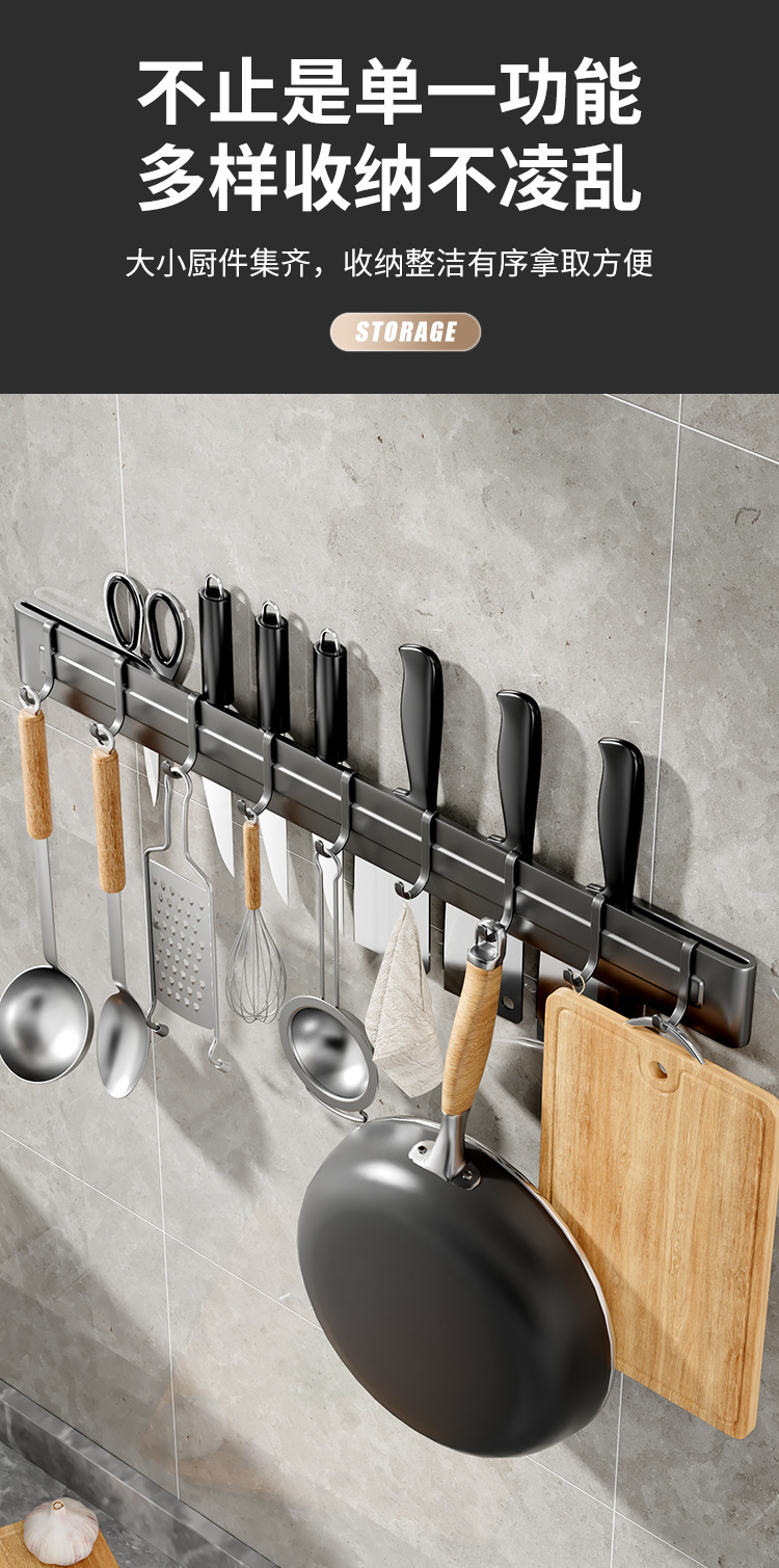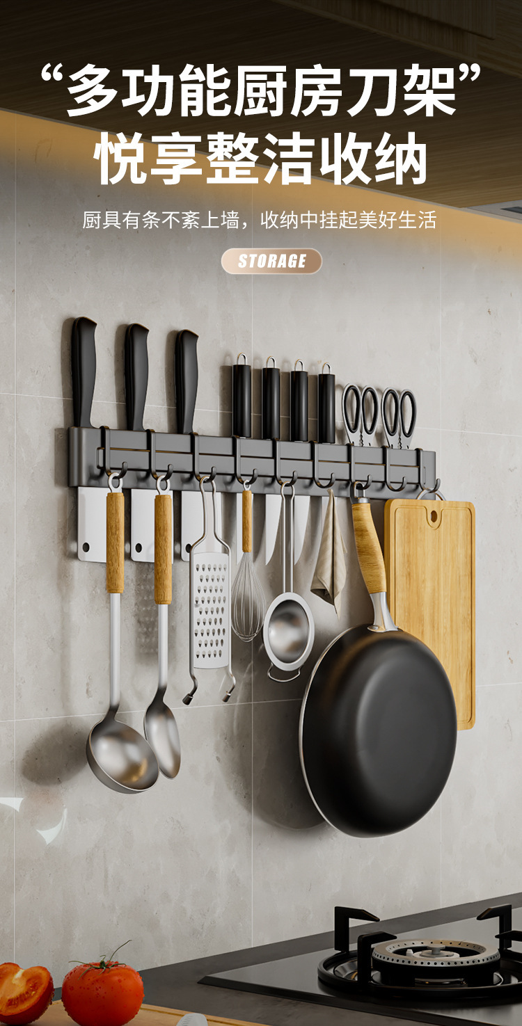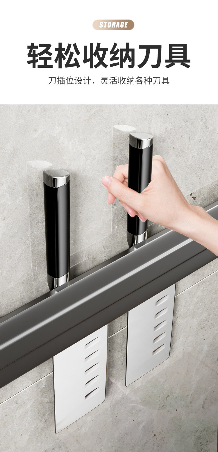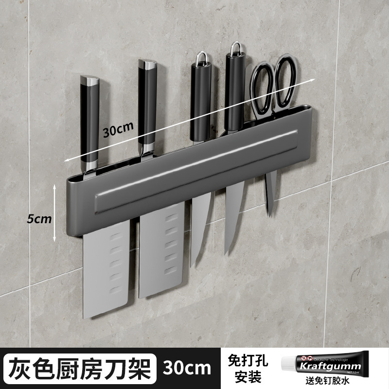 벽에 장착 된 나이프 홀더 스토리지 랙 새로운 천공되지 않은 주방 가정용 후크 다기능 젓가락 나이프 보관 그레이스토어 가기