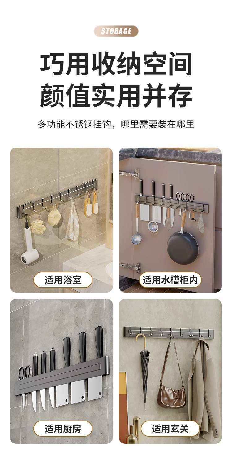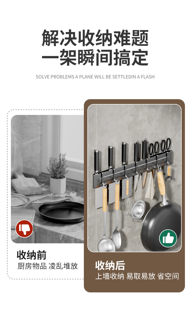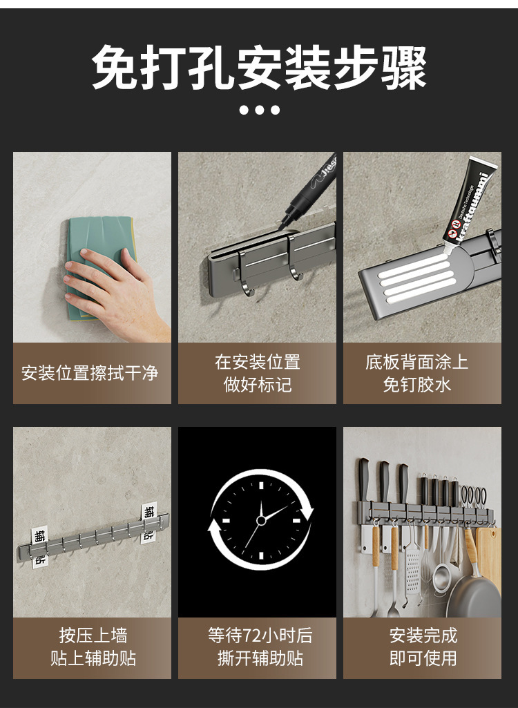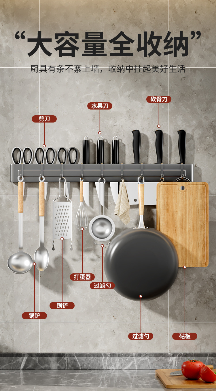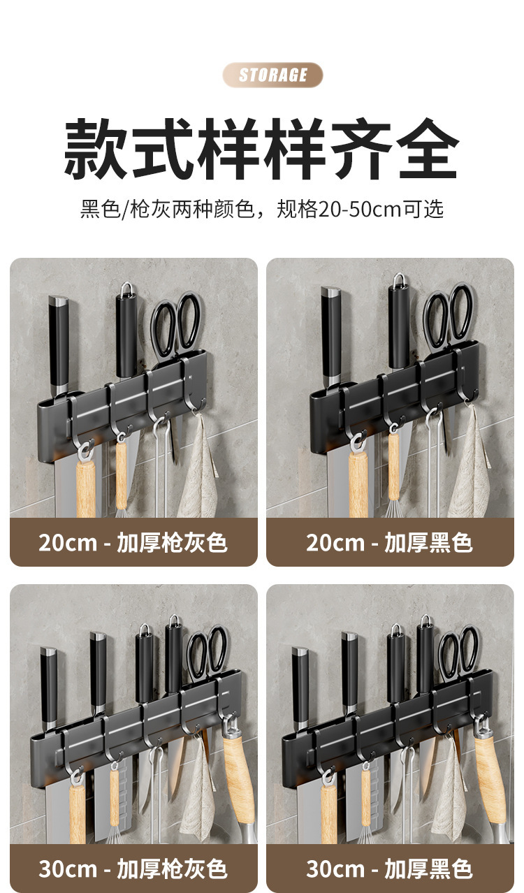 벽에 장착 된 나이프 홀더 스토리지 랙 새로운 천공되지 않은 주방 가정용 후크 다기능 젓가락 나이프 보관 그레이스토어 가기