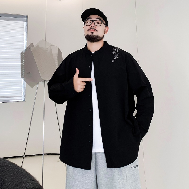 Guofeng 수 놓은 긴팔 셔츠 남성 봄과 가을 패션 브랜드 캐주얼 올 매치 느슨한 수직 칼라 지방 플러스 사이즈 셔츠