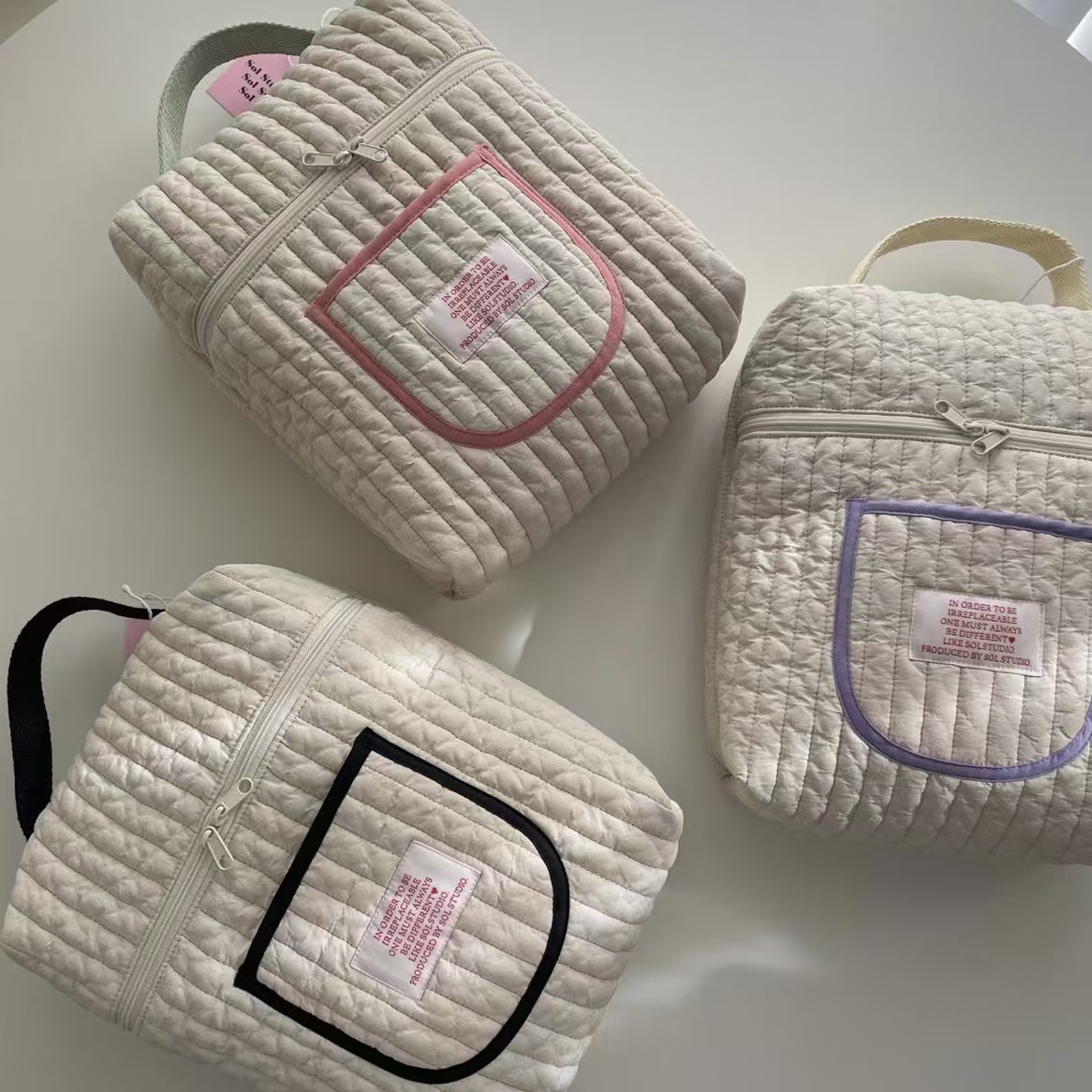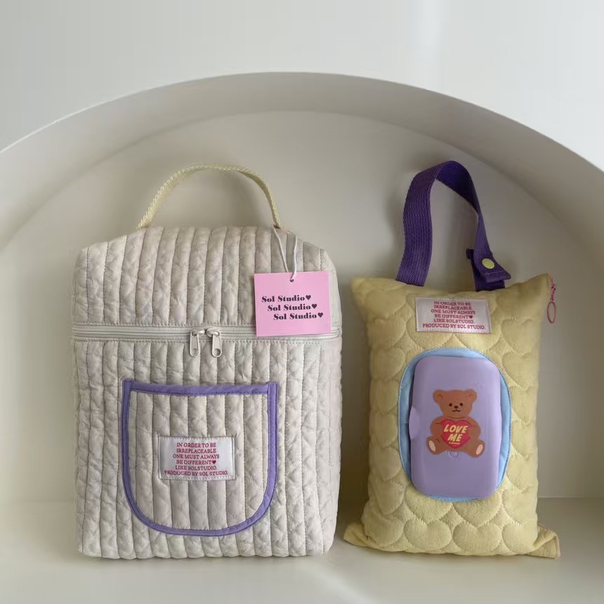 • 보라색 테두리 기저귀 가방 (장식품 미포함)