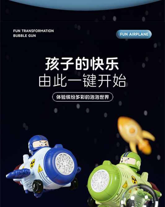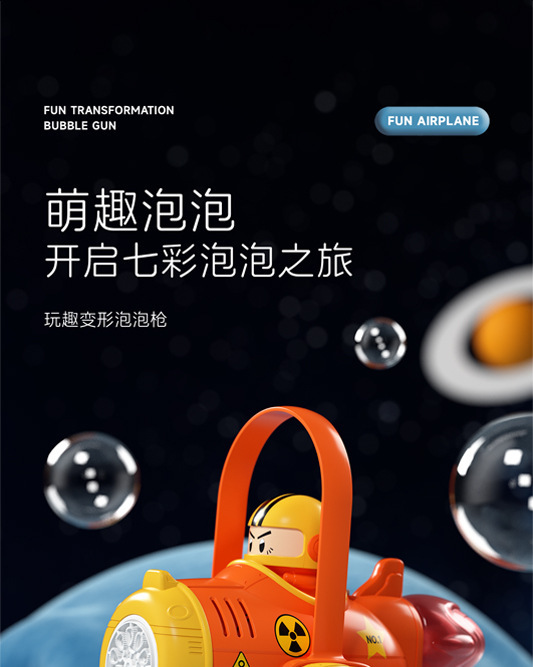 2025 새로운 전기 버블 머신 비행기 변형 버블 건 어린이 휴대용 자동 버블 생성 야외 장난감 도매스토어 가기