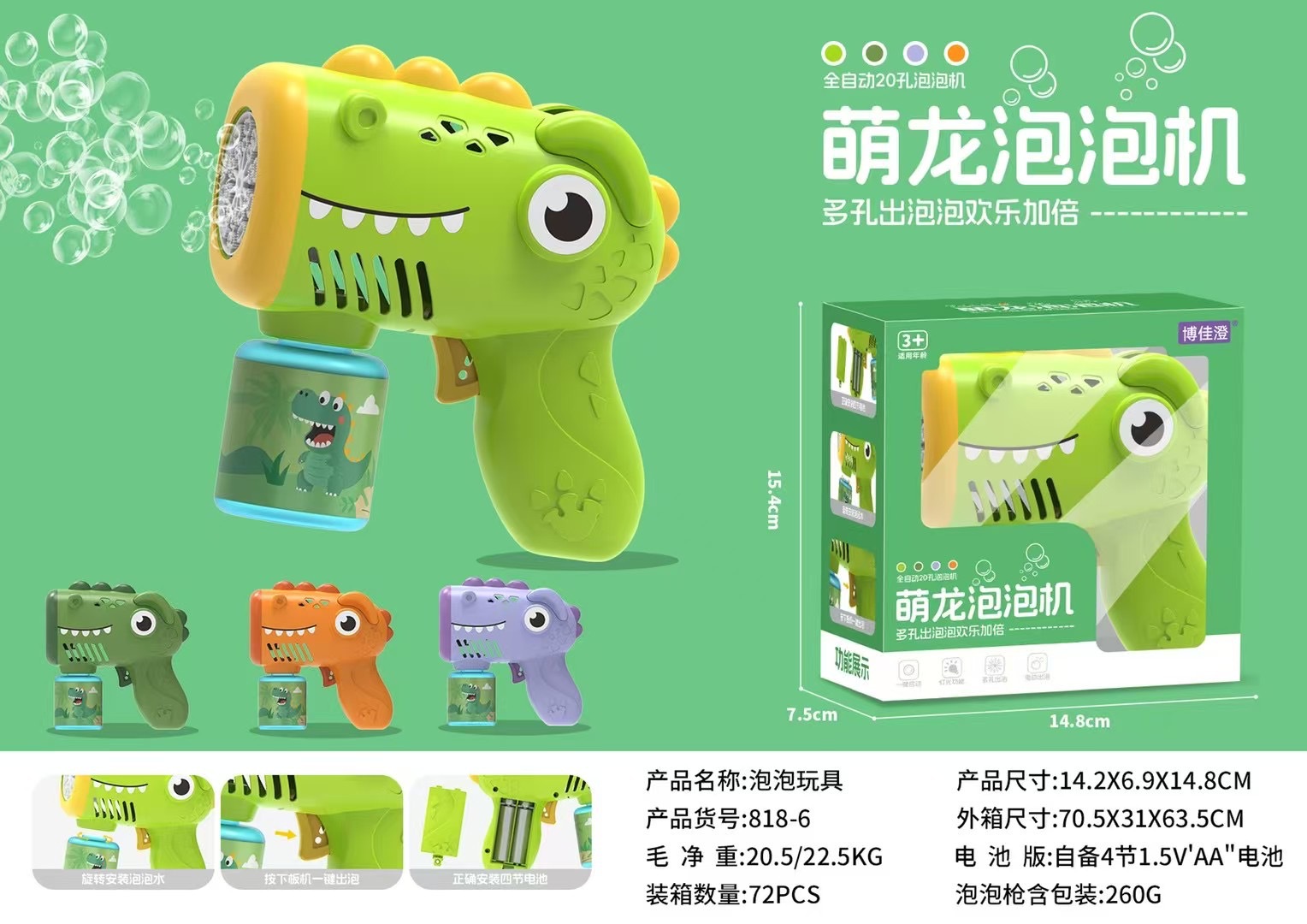 • 박스형 20홀 공룡 버블 머신[연두색]에는 배터리가 포함되어 있지 않습니다.