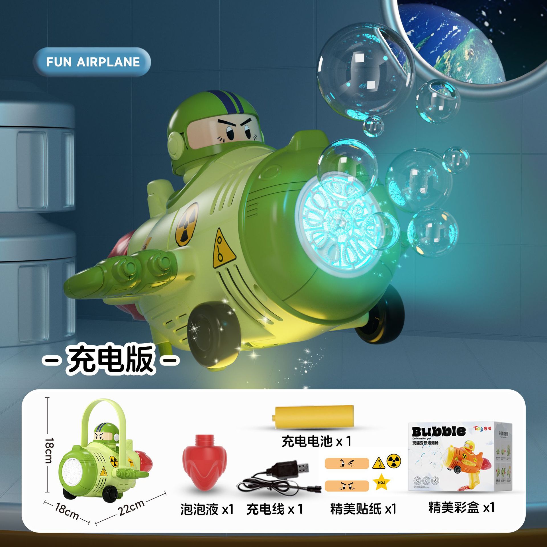 2025 새로운 전기 버블 머신 비행기 변형 버블 건 어린이 휴대용 자동 버블 생성 야외 장난감 도매