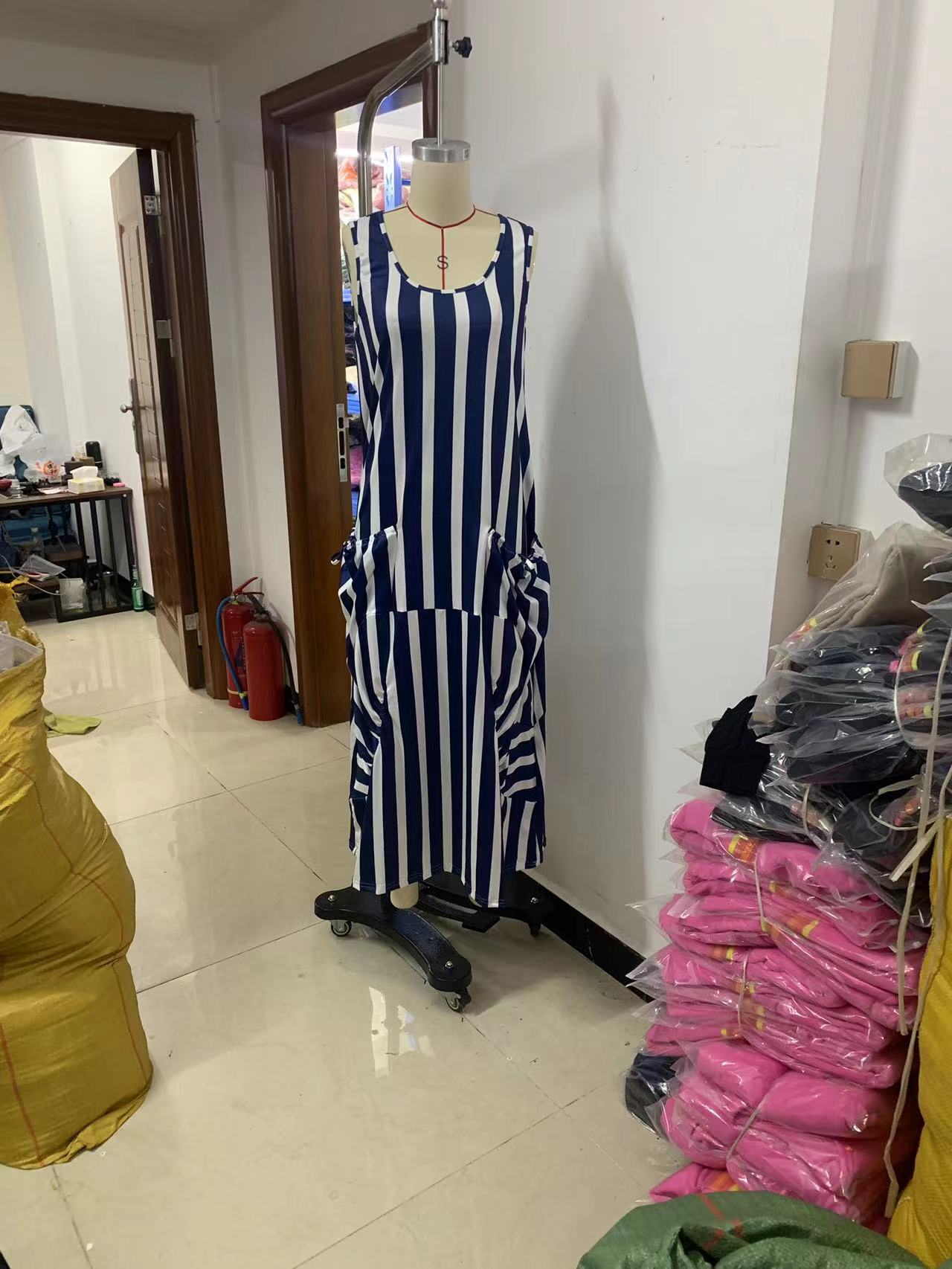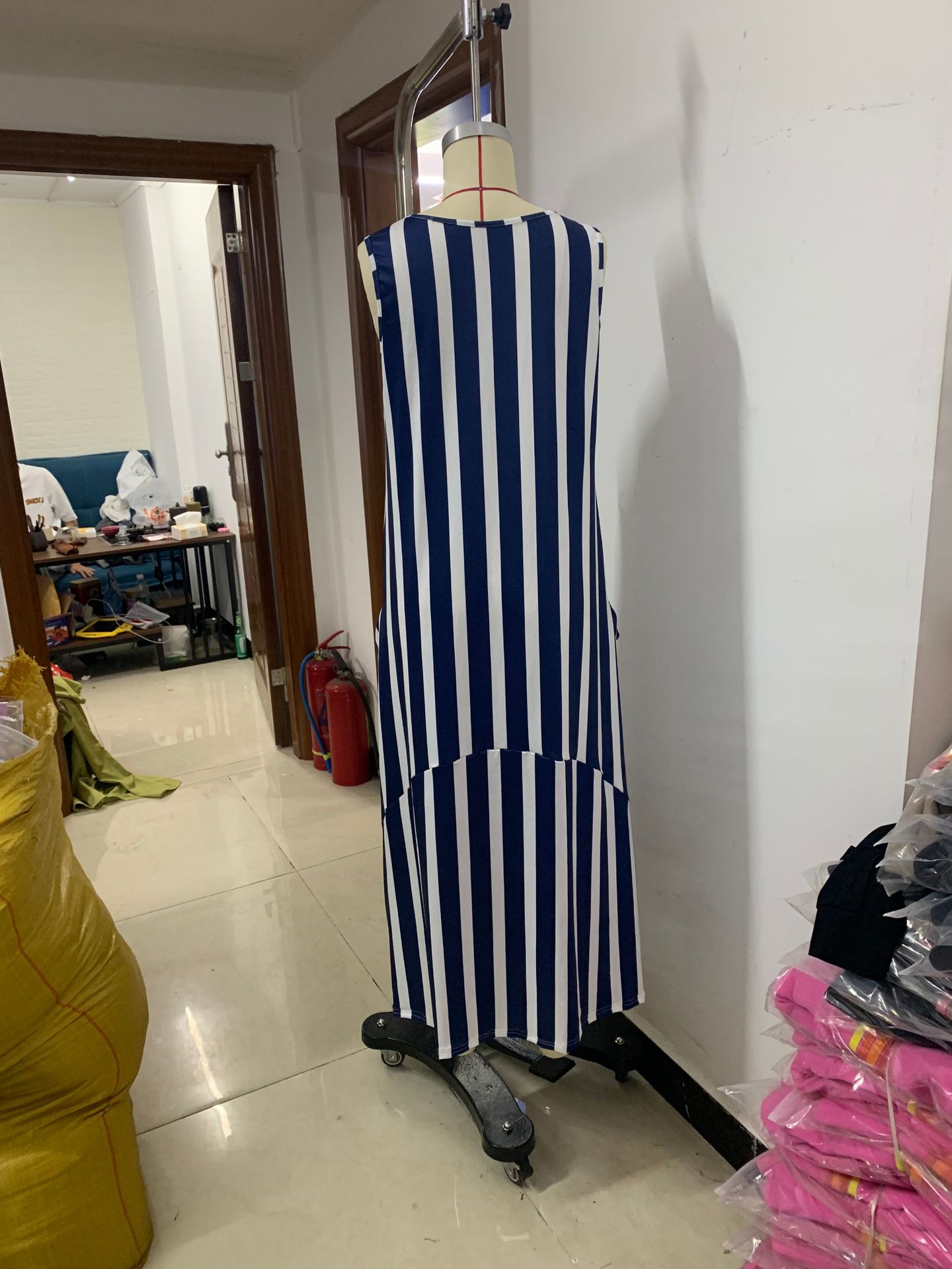 유럽과 미국 국경 2025 아마존 독립 역 여름 새로운 여성 패션 스트라이프 민소매 긴 원피스스토어 가기