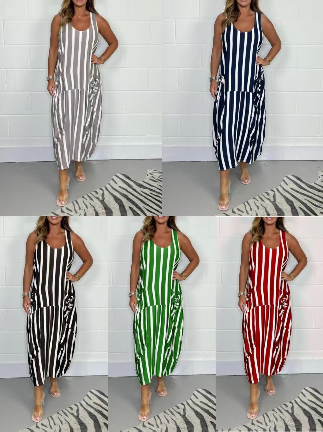 유럽과 미국 국경 2025 아마존 독립 역 여름 새로운 여성 패션 스트라이프 민소매 긴 원피스