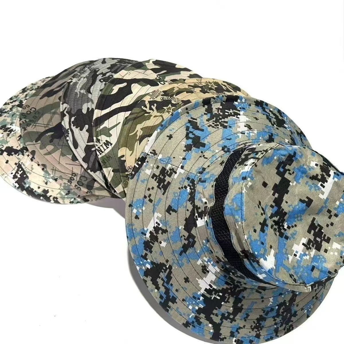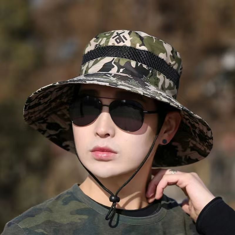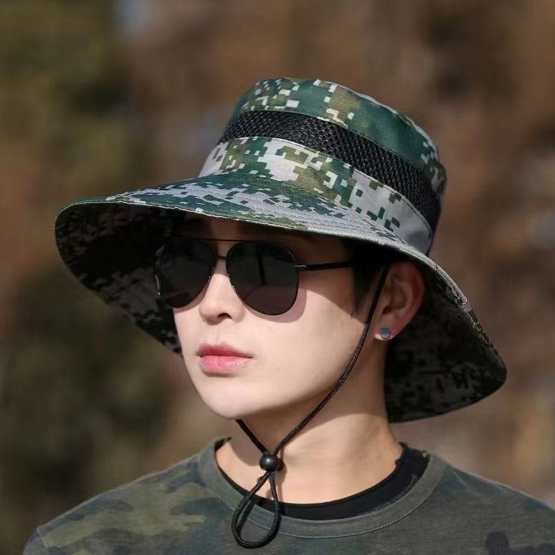 여름 위장 태양 모자 남자 태양 보호 태양 모자 야외 하이킹 모자 낚시 모자 분지 모자 큰 챙 어부 모자