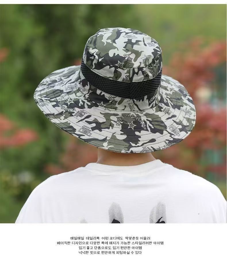 여름 위장 태양 모자 남자 태양 보호 태양 모자 야외 하이킹 모자 낚시 모자 분지 모자 큰 챙 어부 모자스토어 가기