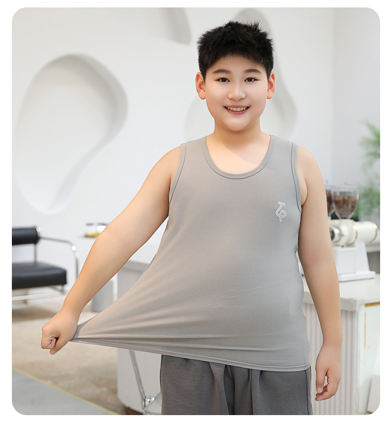 새로운 여름 뚱뚱한 아이들 얇은 조끼 소년 순수한 면화 풀리기 버전 큰 아이 스트레치 민소매 티셔츠 통기성 조끼