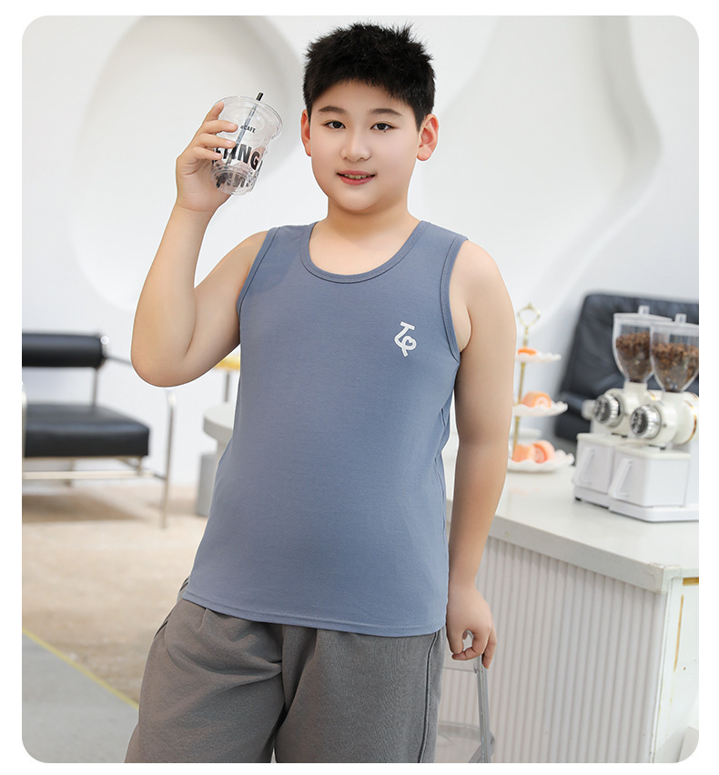 새로운 여름 뚱뚱한 아이들 얇은 조끼 소년 순수한 면화 풀리기 버전 큰 아이 스트레치 민소매 티셔츠 통기성 조끼스토어 가기