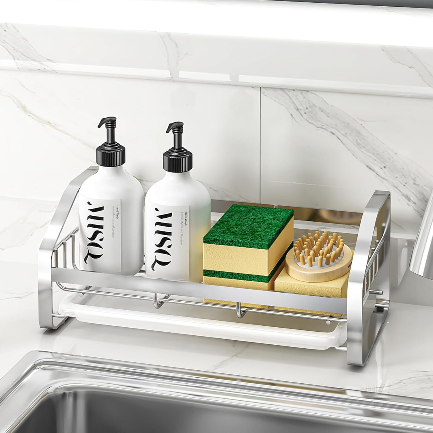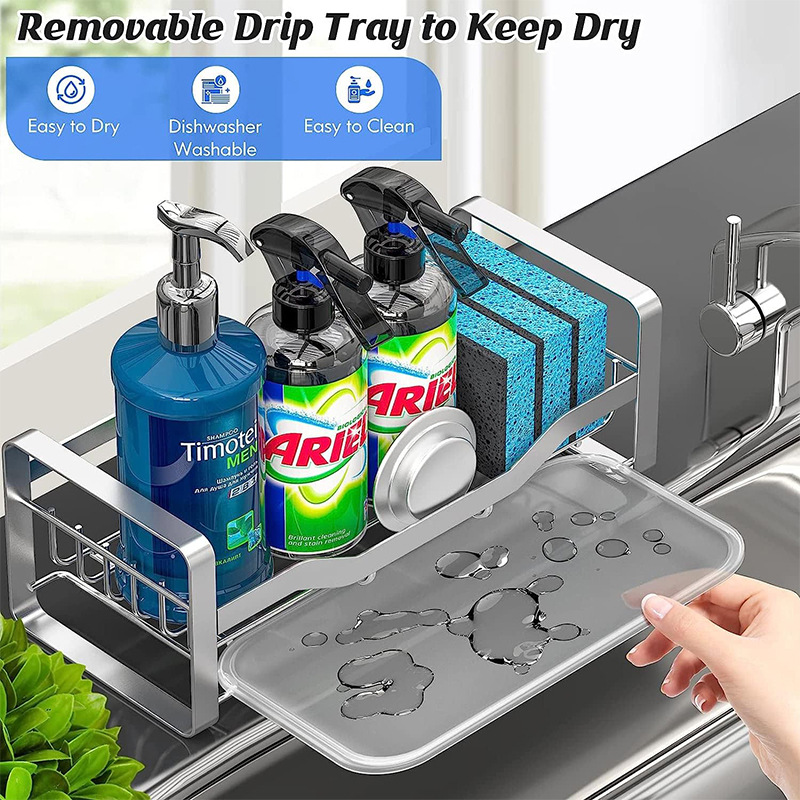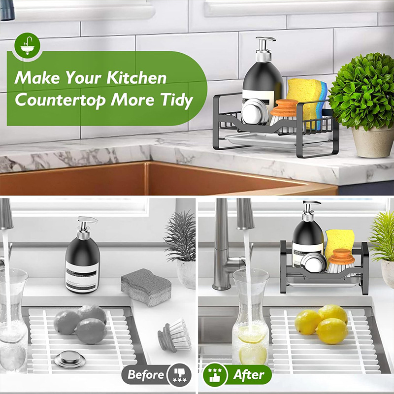 304 스테인레스 스틸 주방 스폰지 배수 랙 바구니 싱크 청소 헝겊 저장 랙 카운터 탑 스틸 와이어 볼 스토리지 랙
