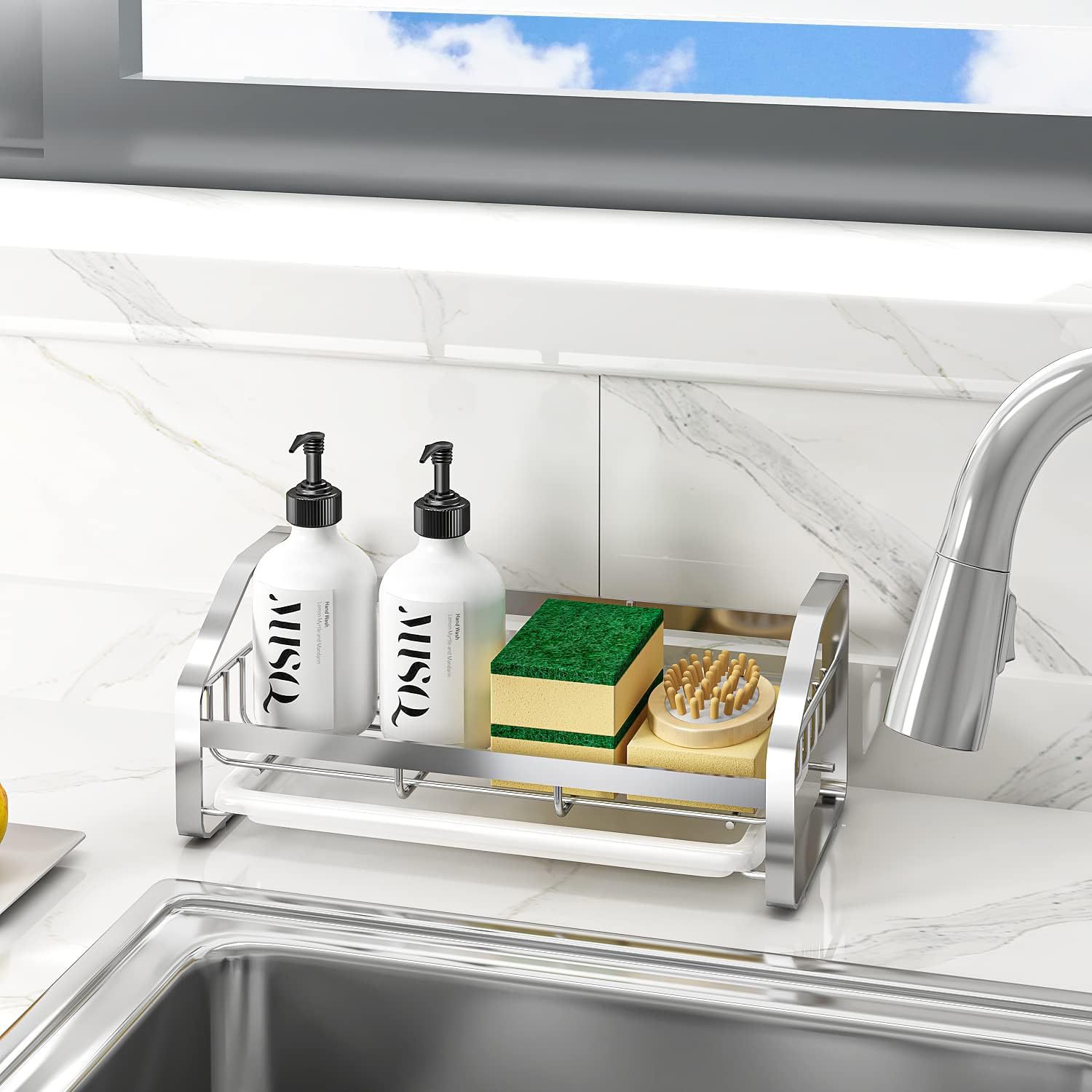 304 스테인레스 스틸 주방 스폰지 배수 랙 바구니 싱크 청소 헝겊 저장 랙 카운터 탑 스틸 와이어 볼 스토리지 랙스토어 가기