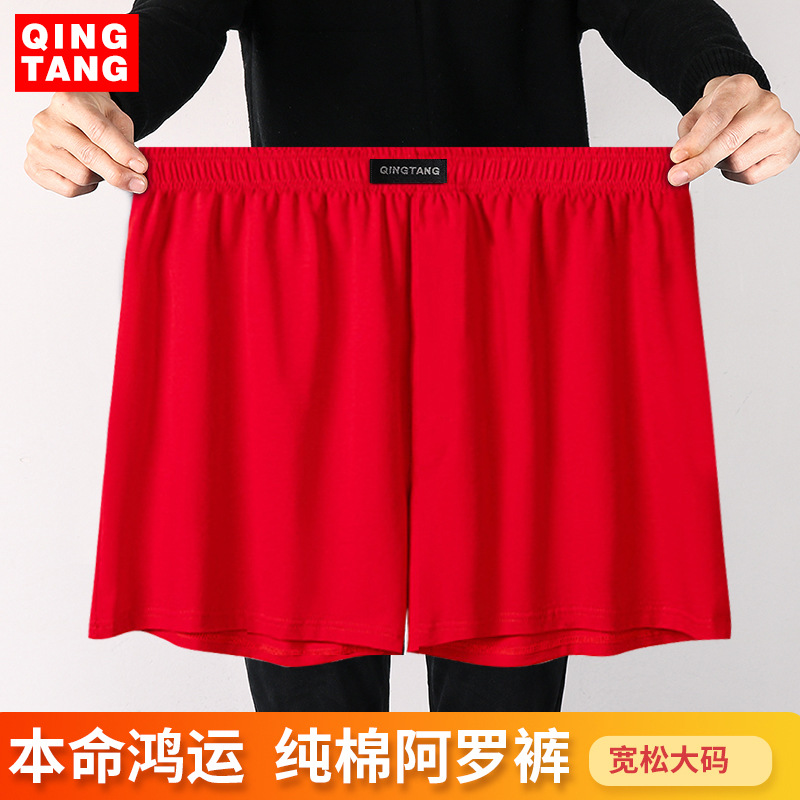 레드 브닝 니안 남성 속옷 퓨어 코튼 알로 바지 높은 허리 느슨한 플러스 사이즈 바지 플랫 코너 복서 반바지