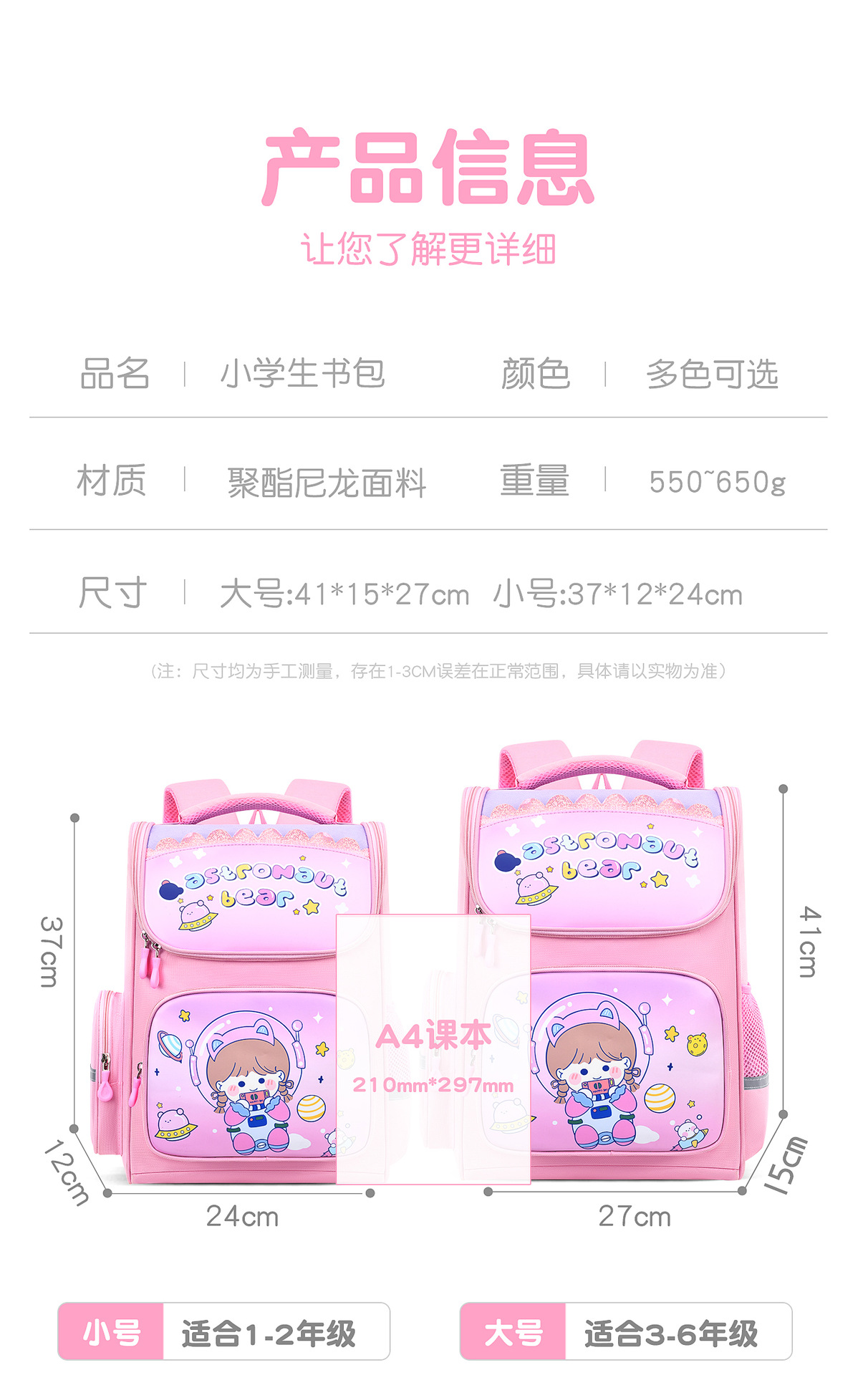 새로운 만화 초등학교 학교 가방 1-6 학년 귀여운 소녀 대용량 배낭 여성 어린이 배낭 도매