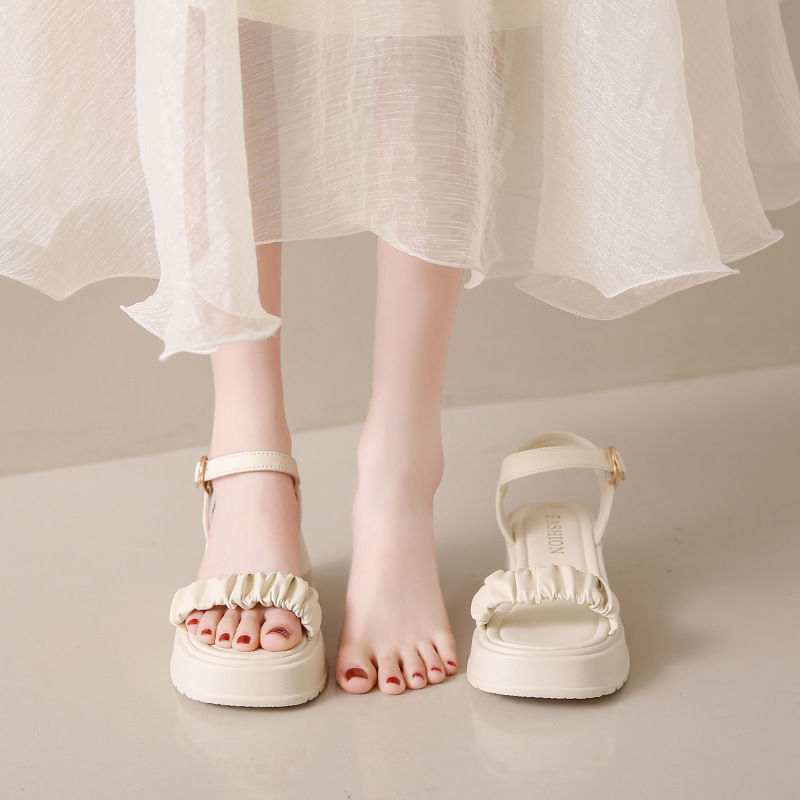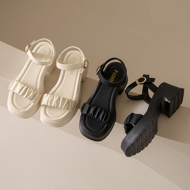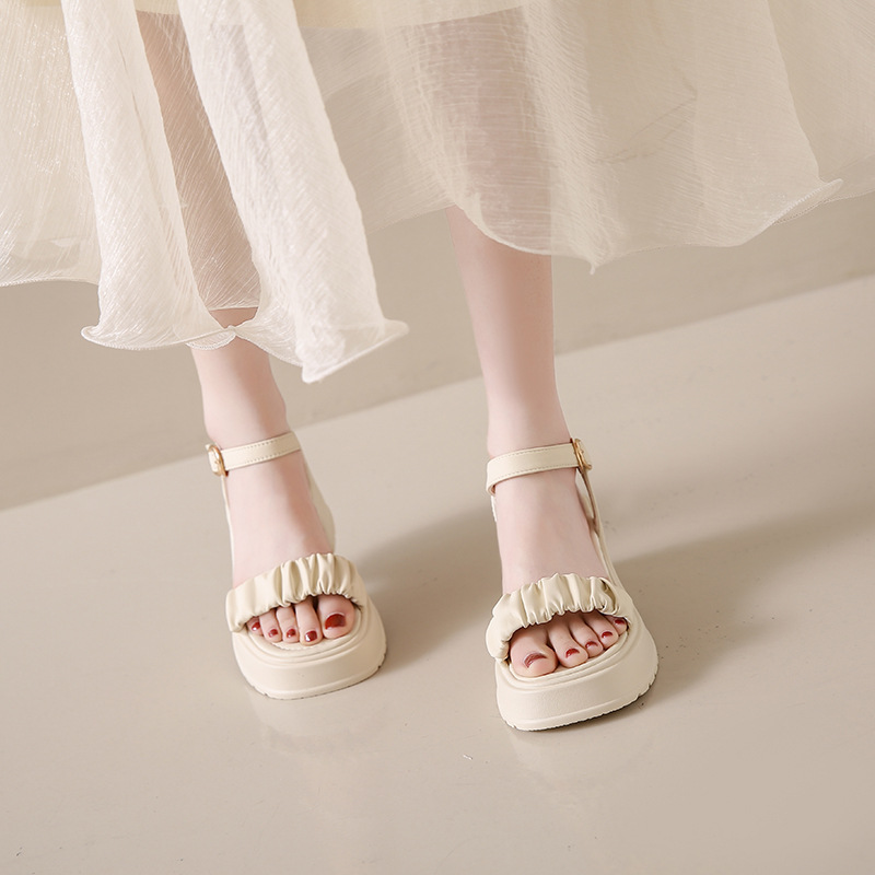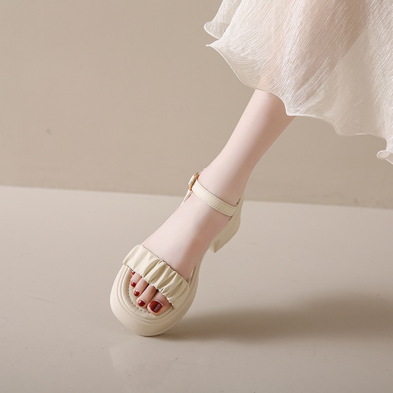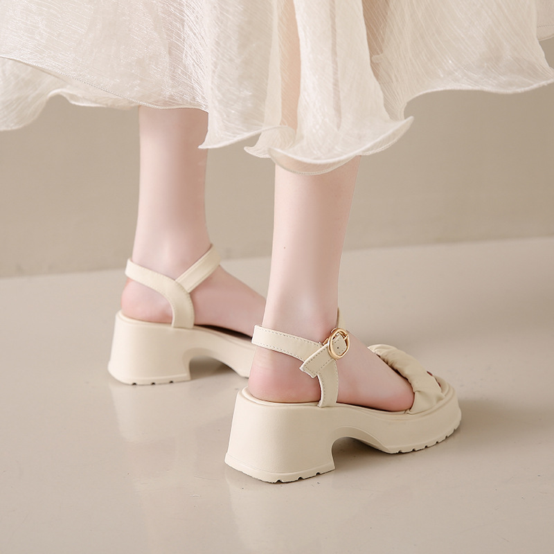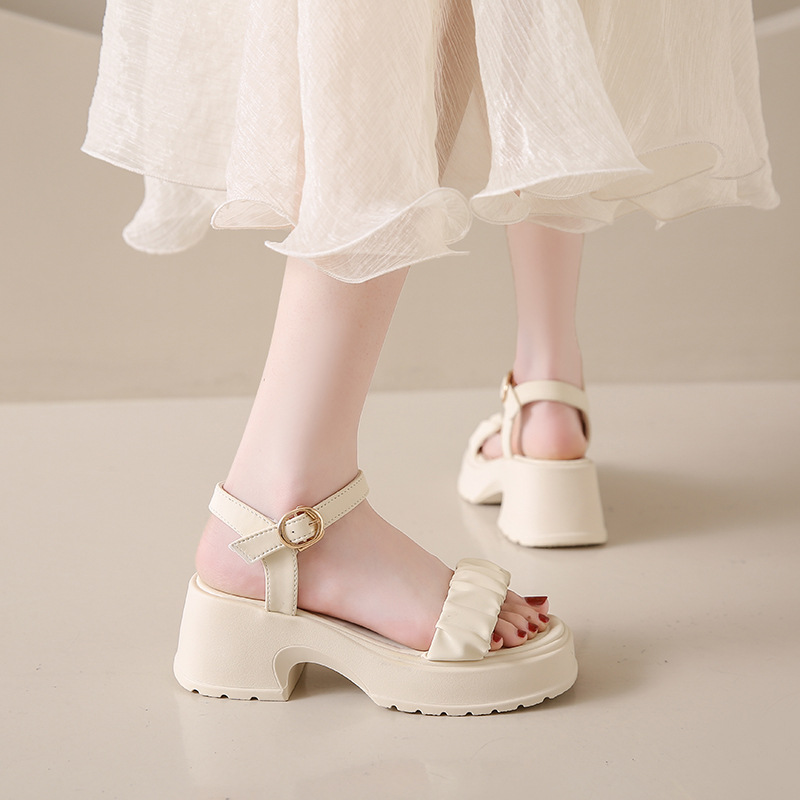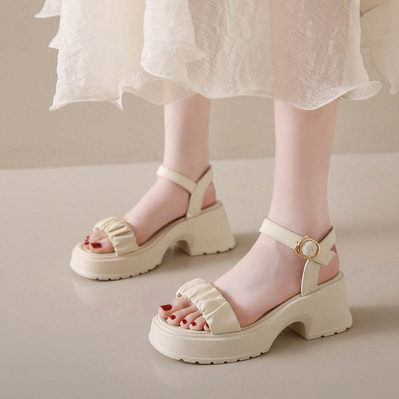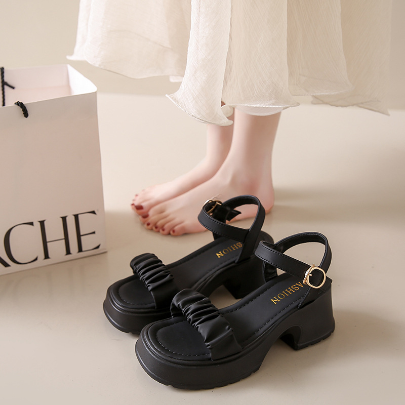페어리 스타일 두꺼운 바닥 두툼한 힐 샌들 여성 2025 년 여름, 치마가 피로하지 않은 발가락 버클 샌들 도매스토어 가기