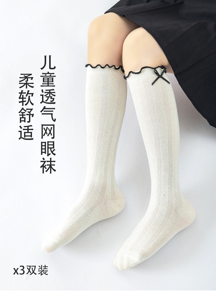 여아 봄 여름 롱삭스 레이스 리본 아동 양말 통기성 메쉬 여아 하이삭스 중소아용스토어 가기