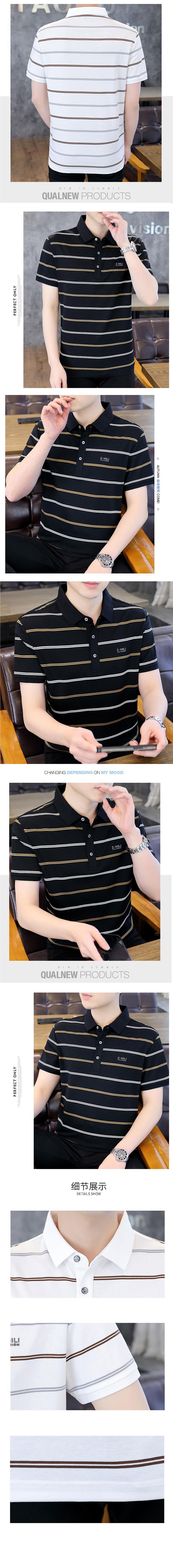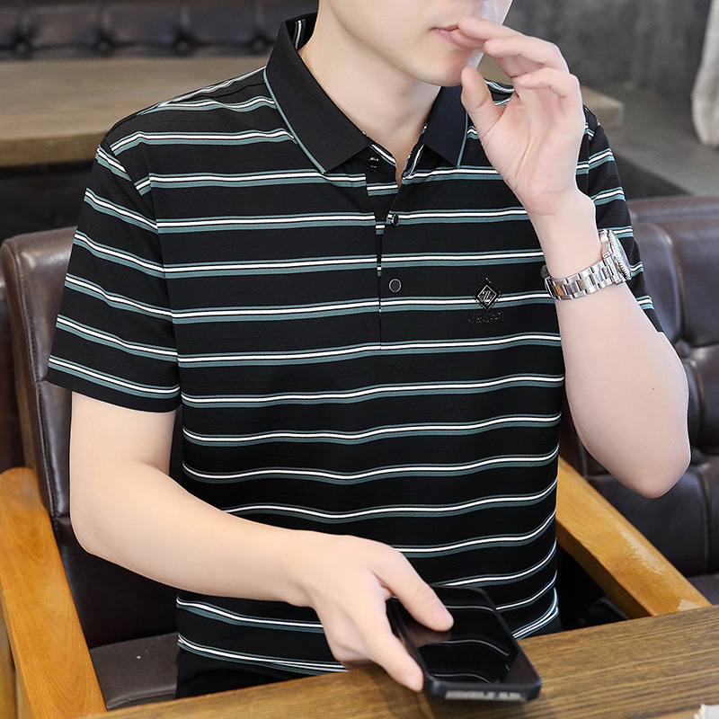 피케 머서라이즈 코튼 남성 셔츠 여름 비즈니스 셔츠 칼라 반팔 티셔츠 스트라이프 탑 의류