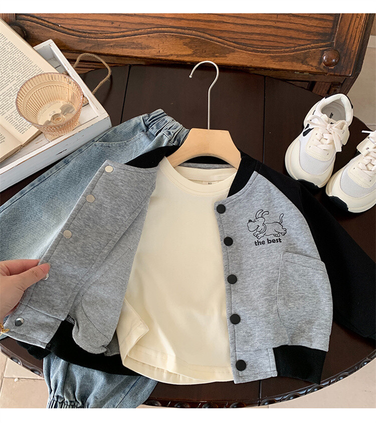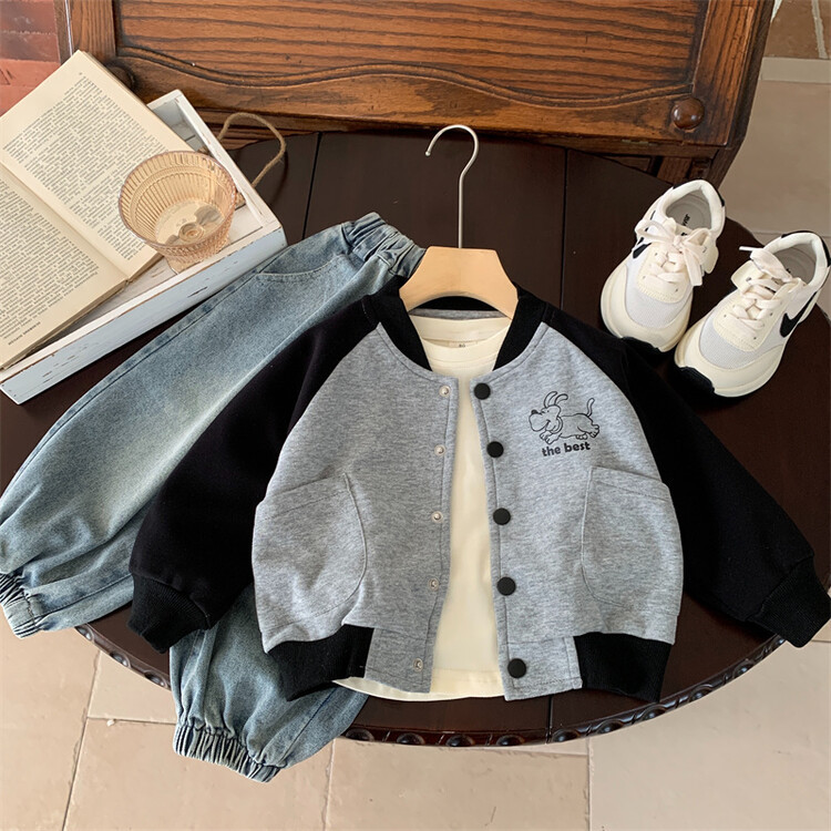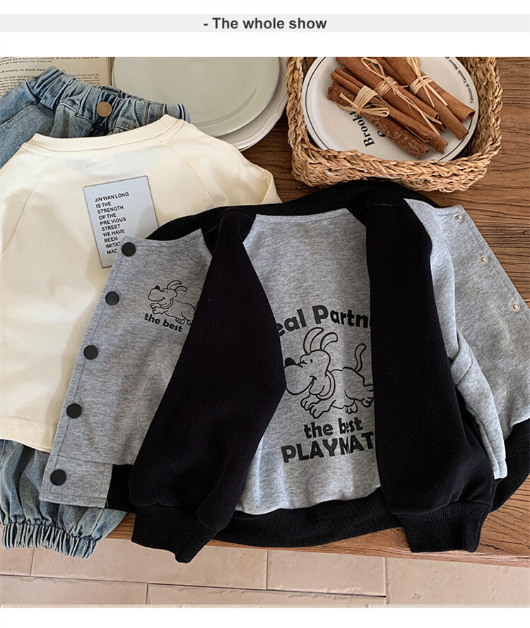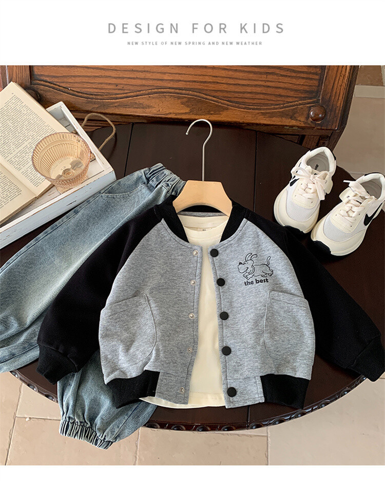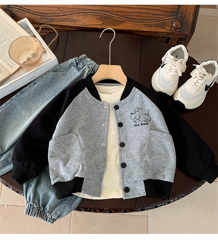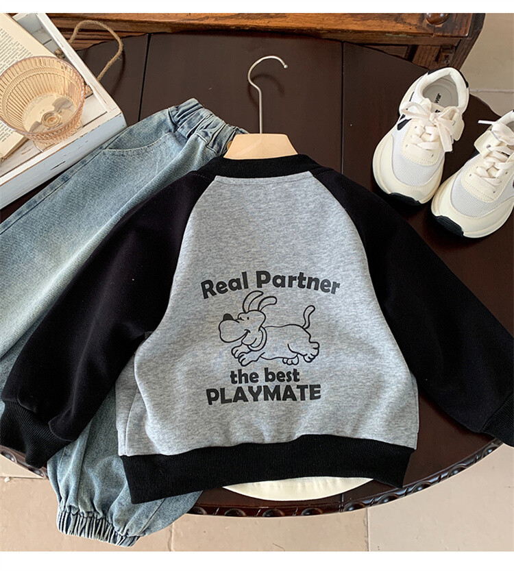 부가탕 어린이 봄옷, 세련된 남아용 한국 스타일 멋진 야구복, 캐주얼 재킷, 어린이 만화 캐릭터 재킷