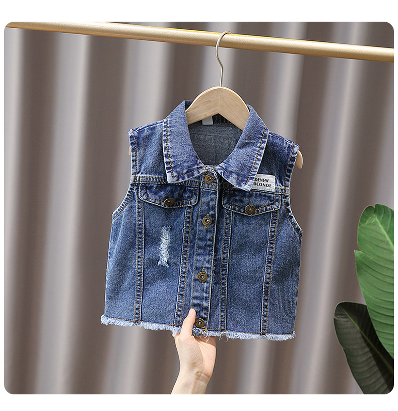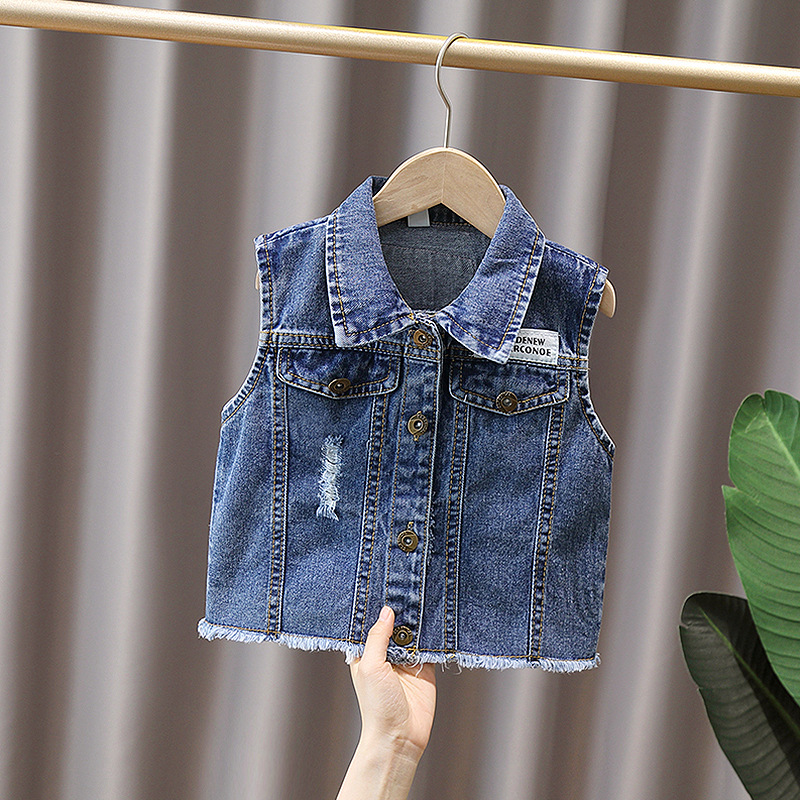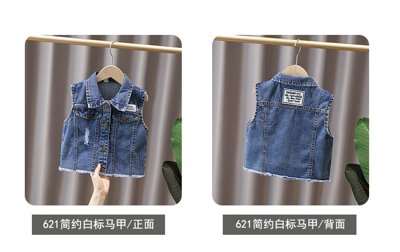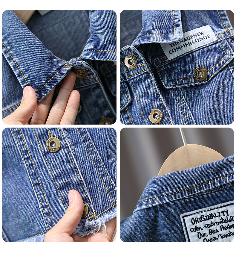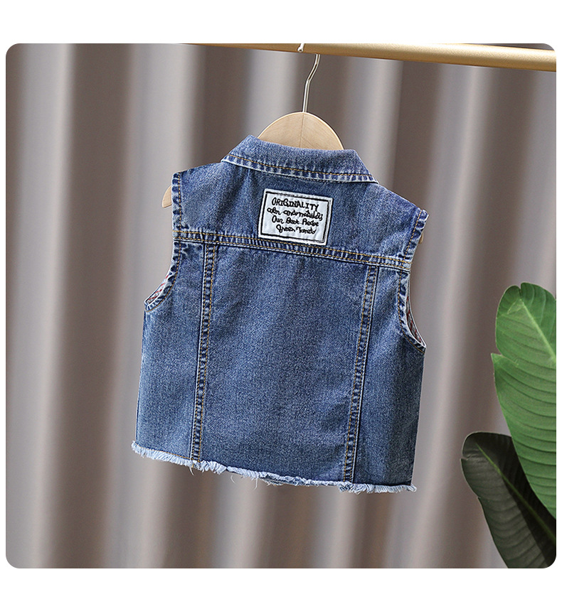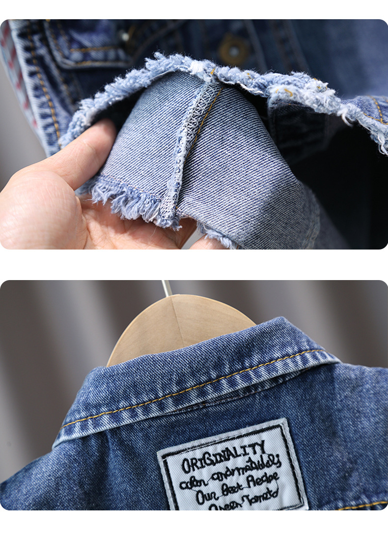 남학생 데님 양복 조끼 봄과 가을 2025 새로운 러피 잘 생긴 소년 재킷 어린이 양복 조끼 봄 조수스토어 가기