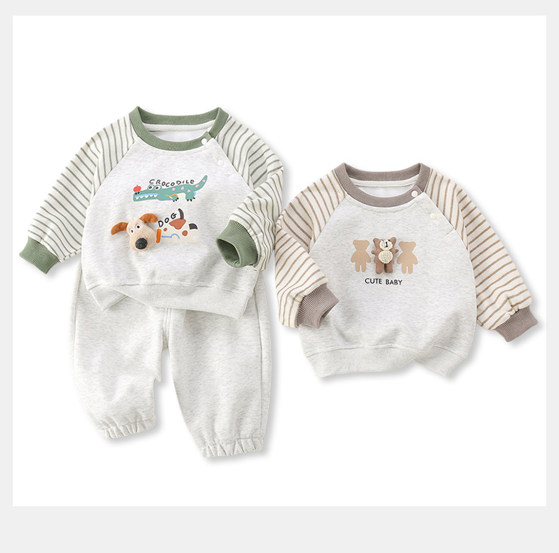 2026년 봄 신상 아동용 분리형 스웨트셔츠 세트, 남아 여아용 A급 순면 의류, 유아 아동복