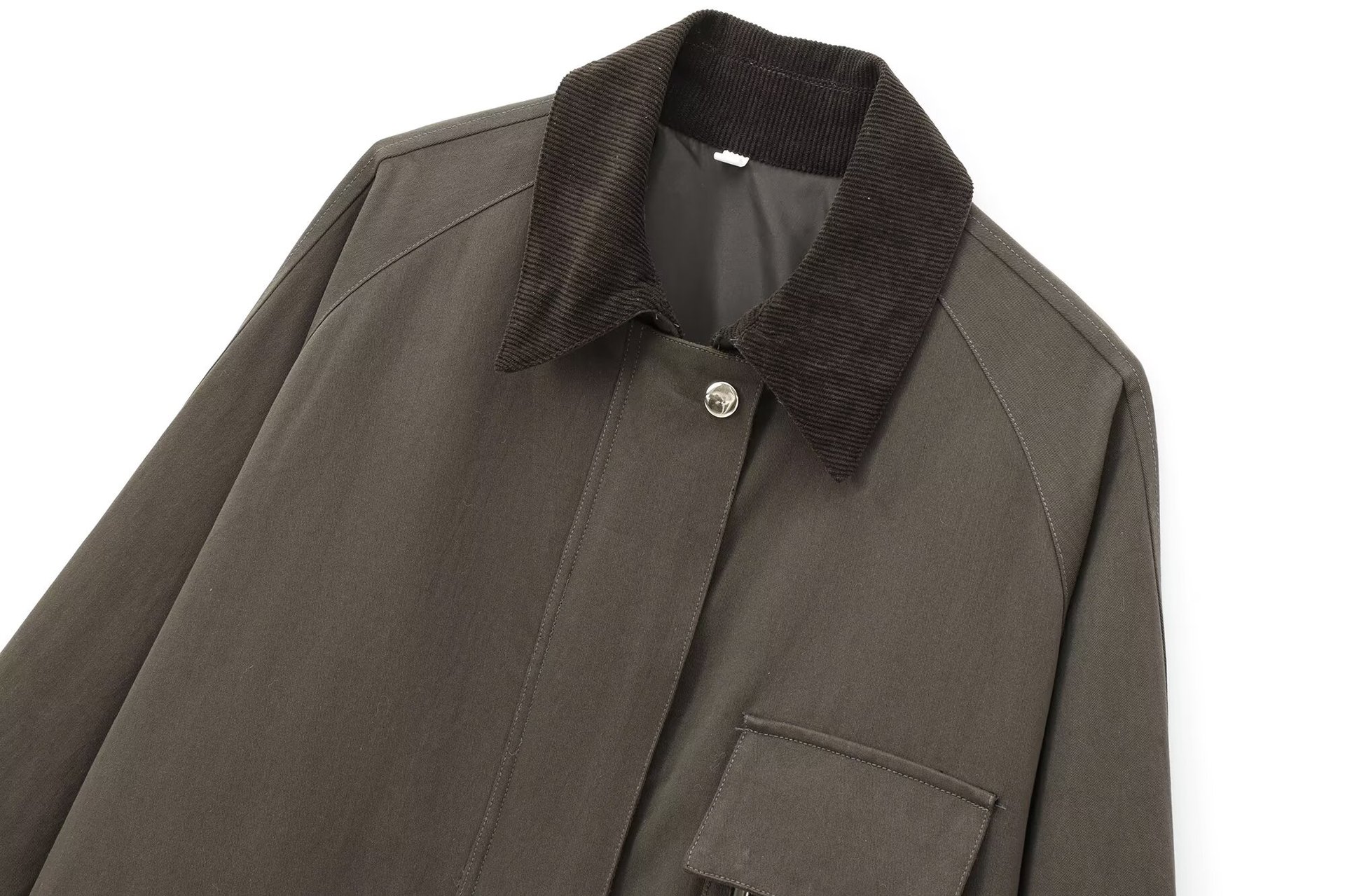 유럽과 미국 스타일 2025 새로운 도착 여자 올 매치 캐주얼 루즈 빈티지 코듀로이 칼라 왁스 가죽 재킷 코트스토어 가기