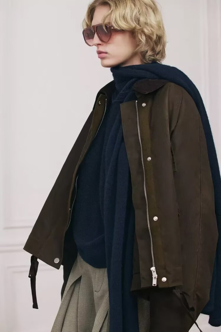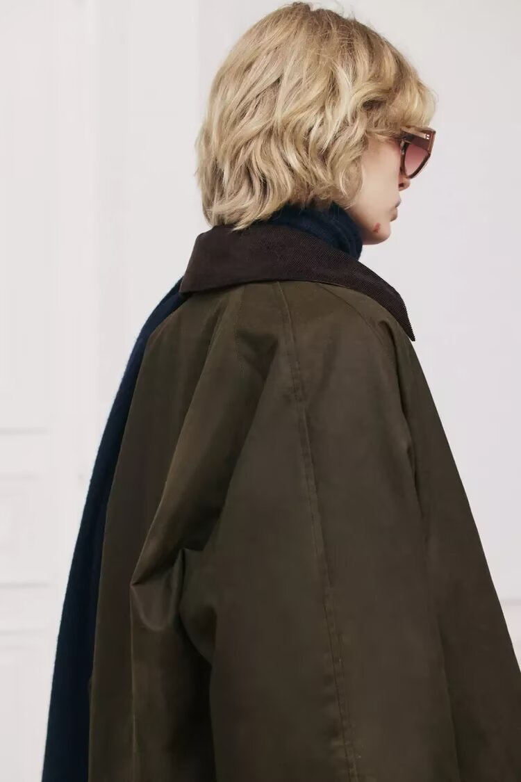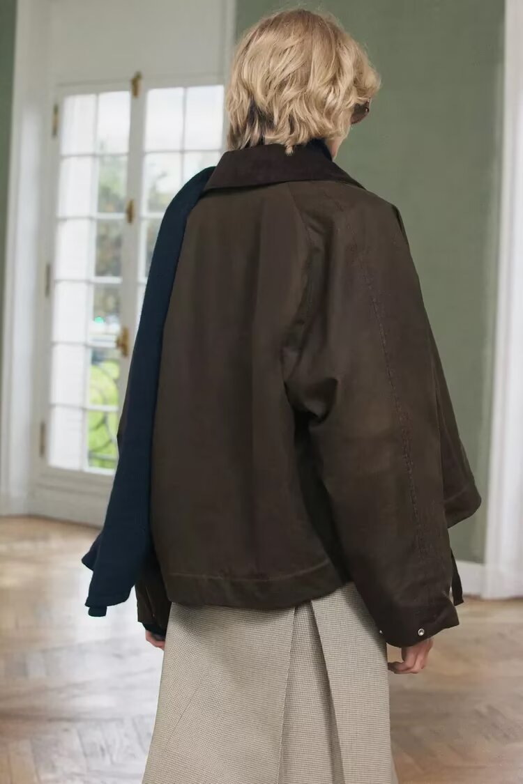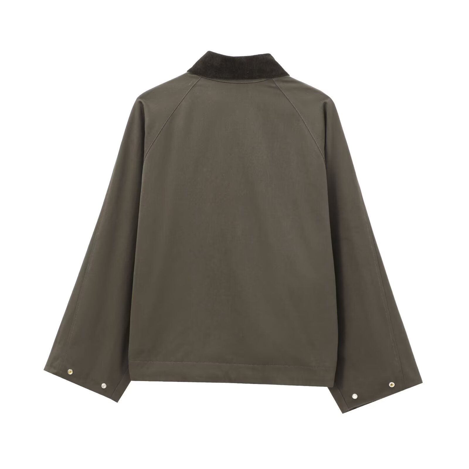 유럽과 미국 스타일 2025 새로운 도착 여자 올 매치 캐주얼 루즈 빈티지 코듀로이 칼라 왁스 가죽 재킷 코트