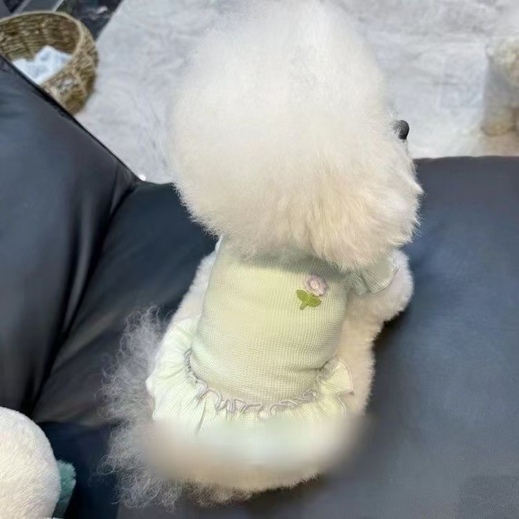 개 옷 봄 여름 가을 새로운 와플 작은 꽃 비행 소매 치마 애완 동물 고양이 곰 테디보다 귀여운스토어 가기