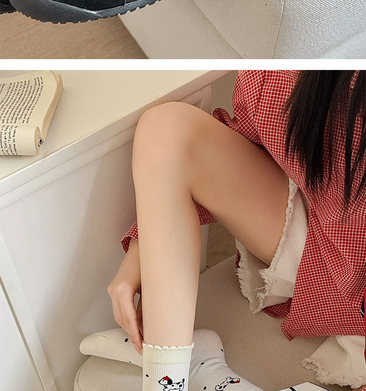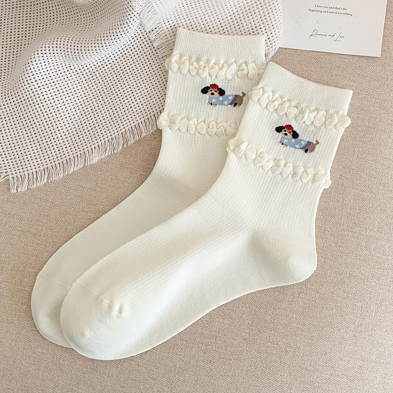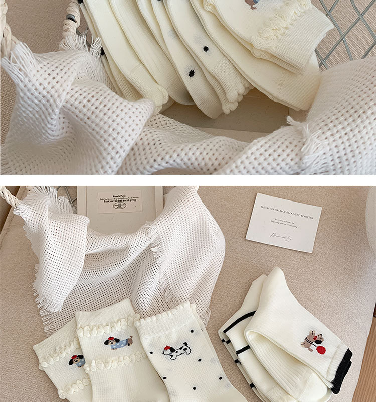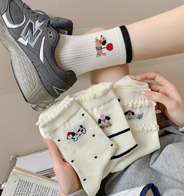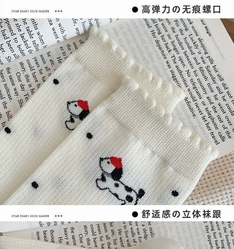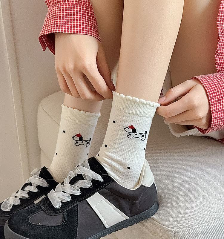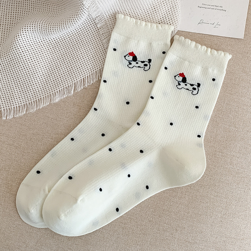 양말 여성 인터넷 인기있는 닥스 훈트 개 중간 길이 양말 봄과 여름 얇은 인스 타 그램 인기있는 일본 스타일 귀여운 웨이브 도트 스타킹 여성
