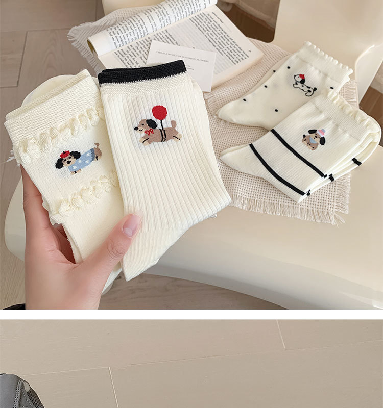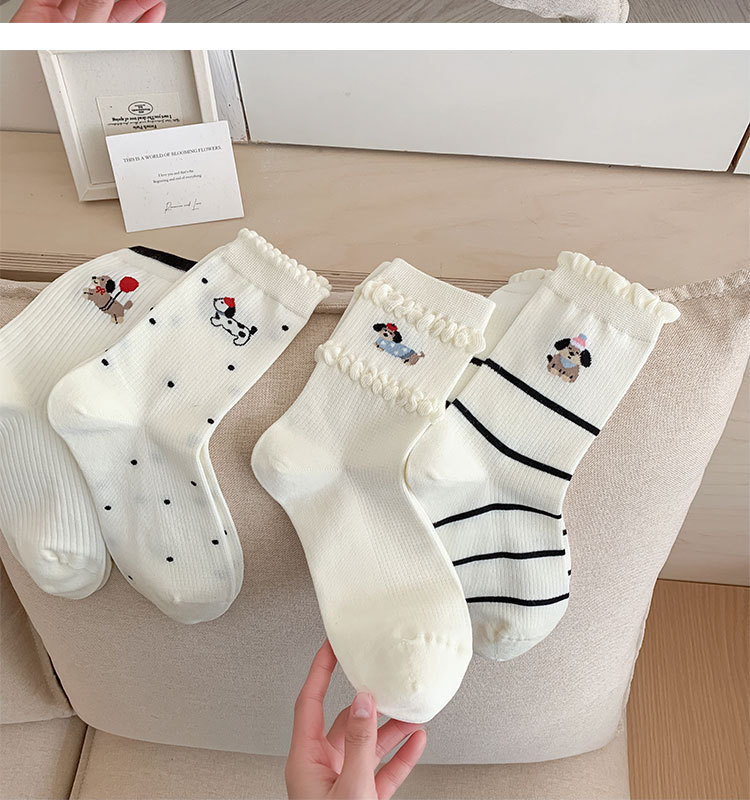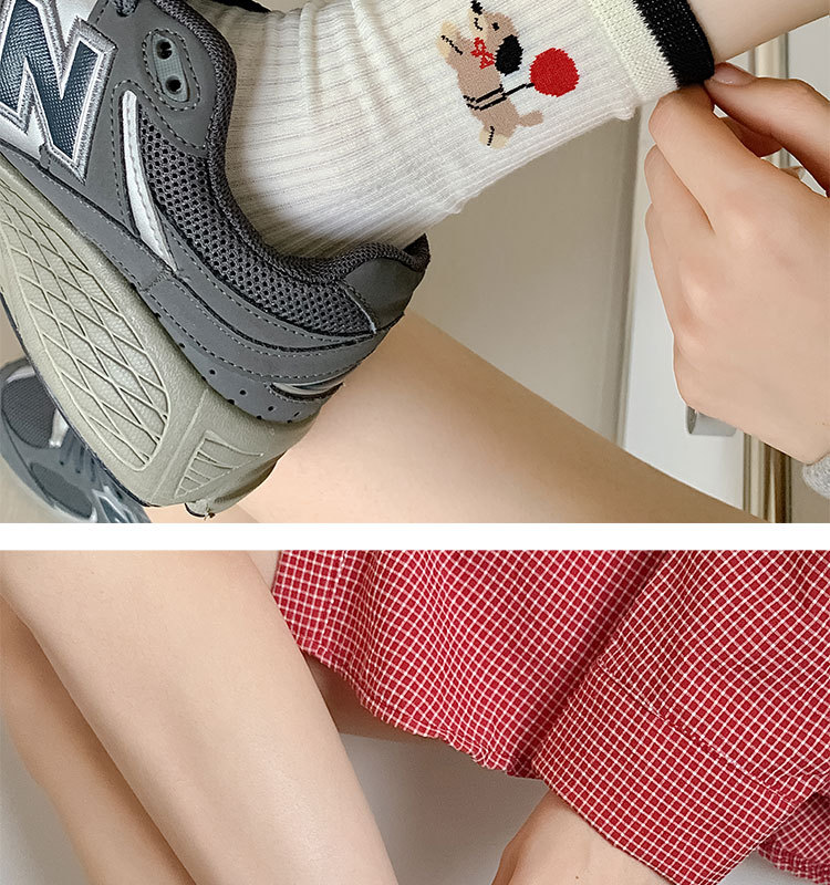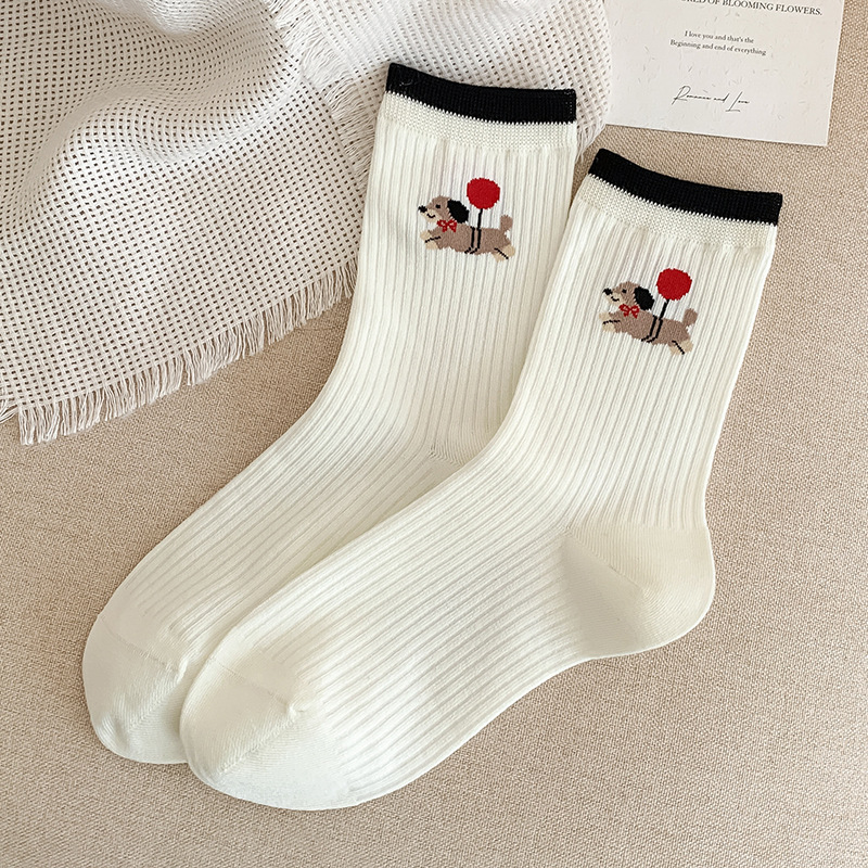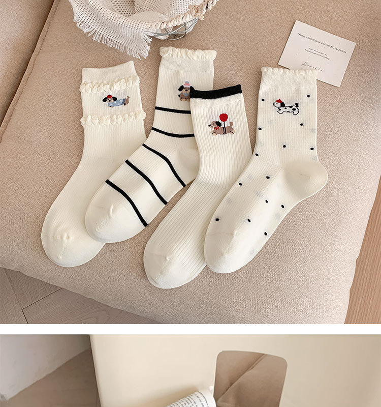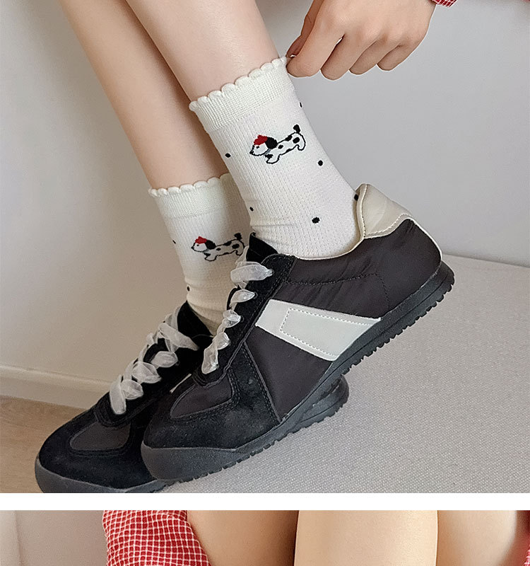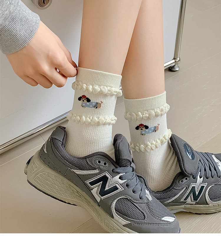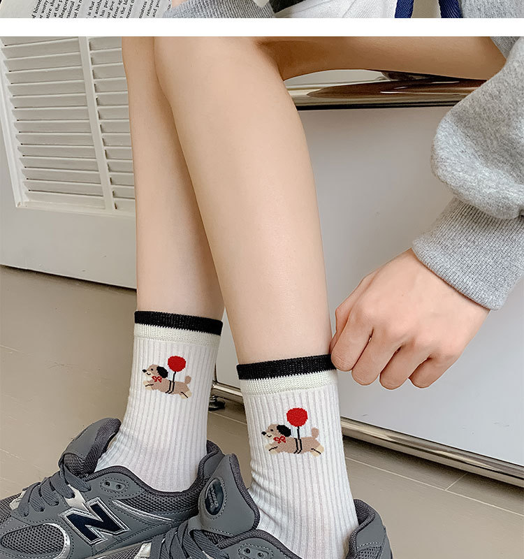 양말 여성 인터넷 인기있는 닥스 훈트 개 중간 길이 양말 봄과 여름 얇은 인스 타 그램 인기있는 일본 스타일 귀여운 웨이브 도트 스타킹 여성