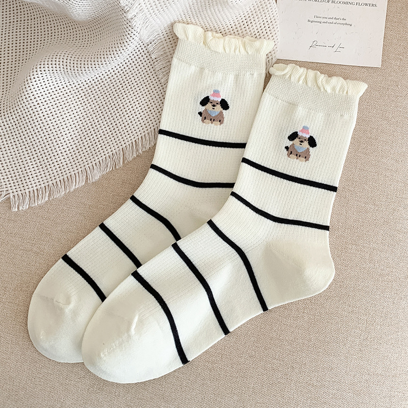 양말 여성 인터넷 인기있는 닥스 훈트 개 중간 길이 양말 봄과 여름 얇은 인스 타 그램 인기있는 일본 스타일 귀여운 웨이브 도트 스타킹 여성스토어 가기