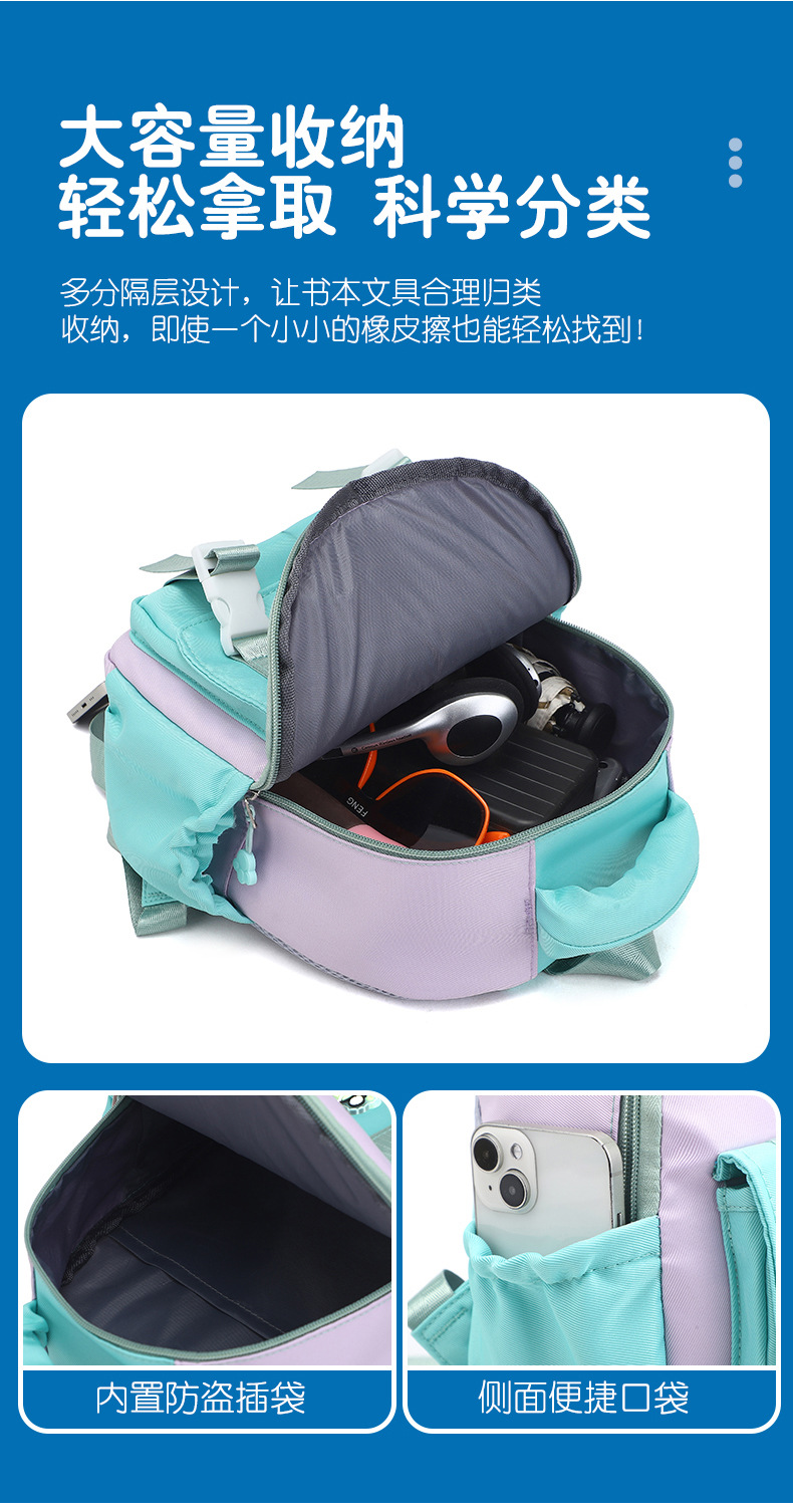 초경량 미끄럼 방지 초중등학생 책가방, 귀여운 배색 남녀공용 백팩, 야외 캠핑 어린이 하이킹 배낭