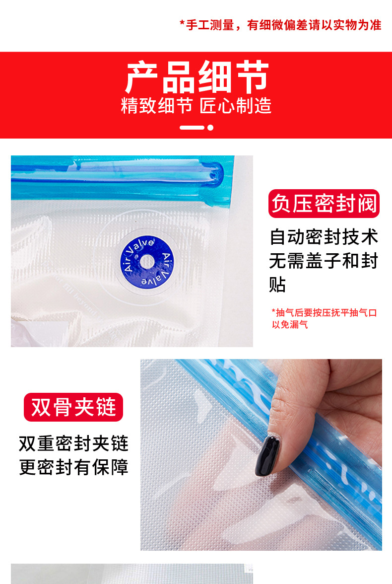 진공 펌핑 식품 신선한 유지 가방 가정용 두꺼운 더블 체인 클램프 식품 밀봉 가방 식품 등급 패턴 진공 가방