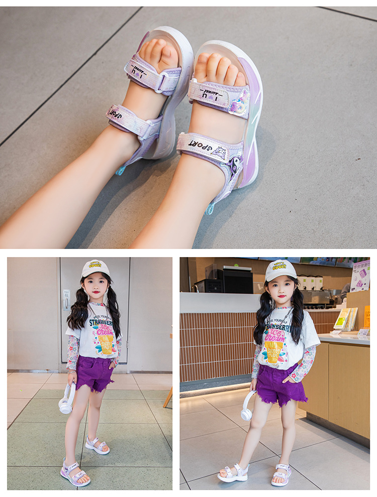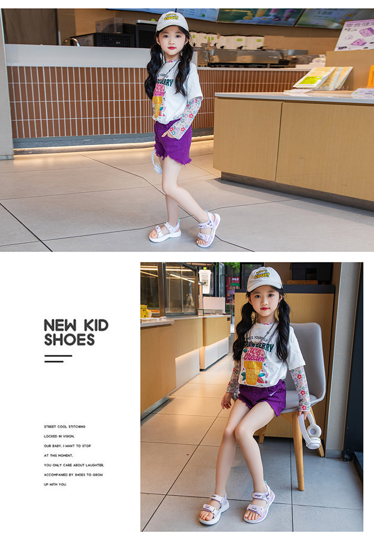 소녀 샌들 소프트 단독 어린이 공주 신발 여름 새로운 사이버 기념 비치 신발 귀여운 미끄럼 방지 소녀 캐주얼 신발스토어 가기