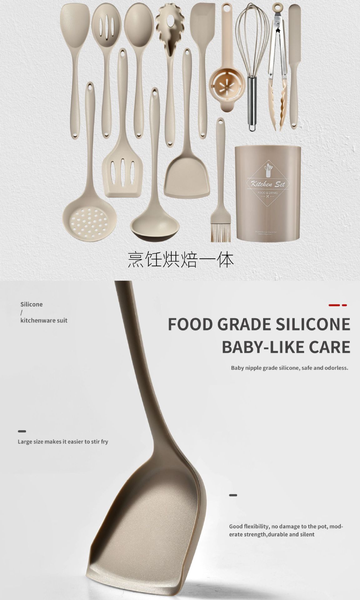 국경 간 원피스 실리콘 주방용품 15 피스 세트 비 스틱 냄비 실리콘 주걱 수프 스푼 주방 도구 요리 주걱 스푼 세트