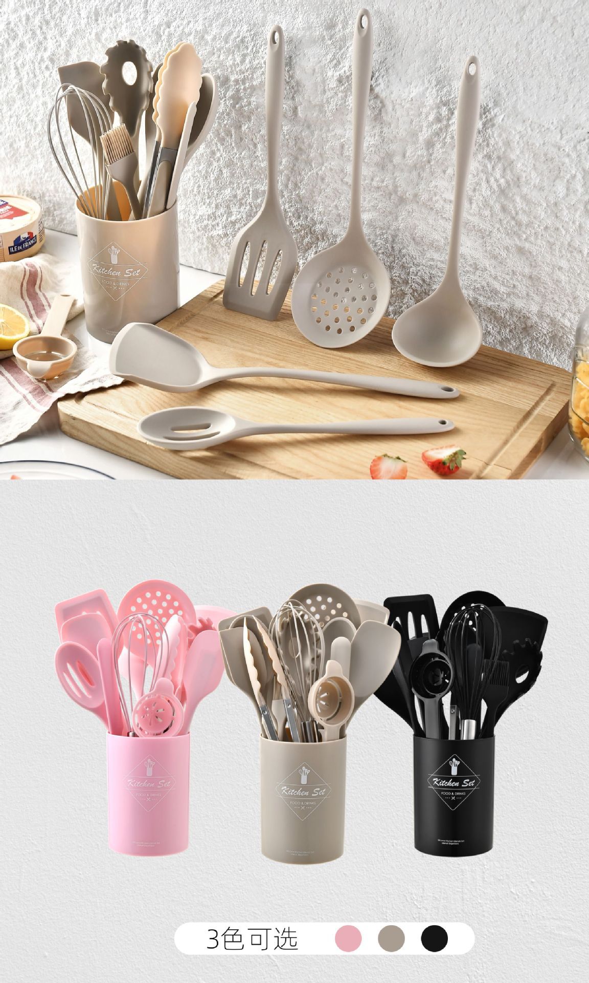 국경 간 원피스 실리콘 주방용품 15 피스 세트 비 스틱 냄비 실리콘 주걱 수프 스푼 주방 도구 요리 주걱 스푼 세트스토어 가기