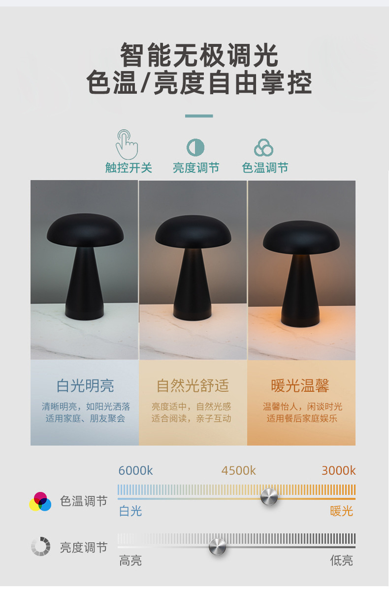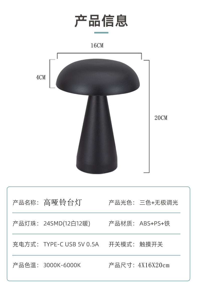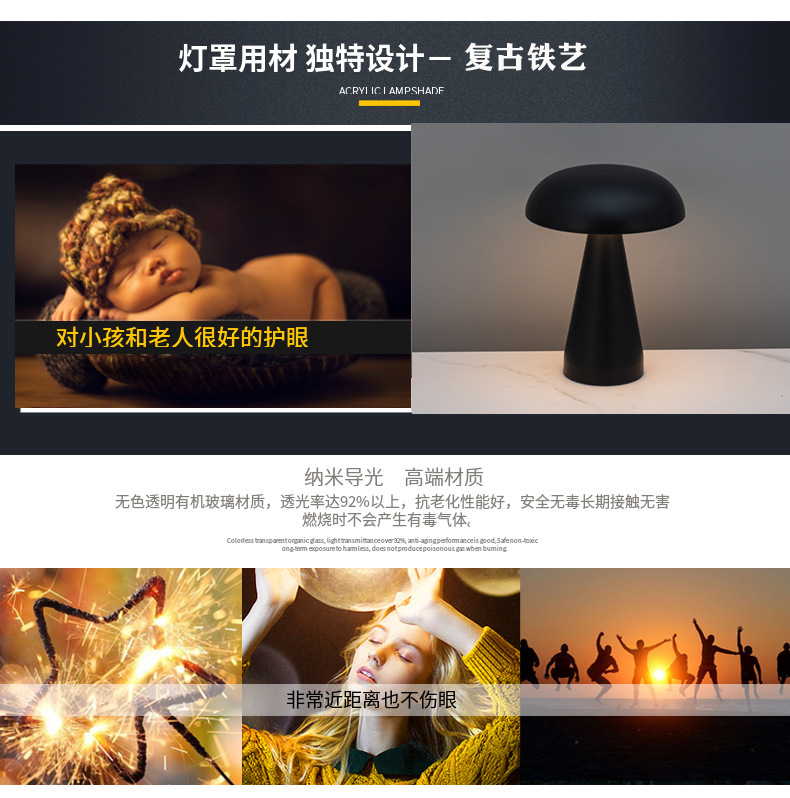 국경을 넘는 바 분위기 조명 버섯 모양 심플 메탈 터치 야간 조명 야외 레스토랑 테이블 램프 미니
