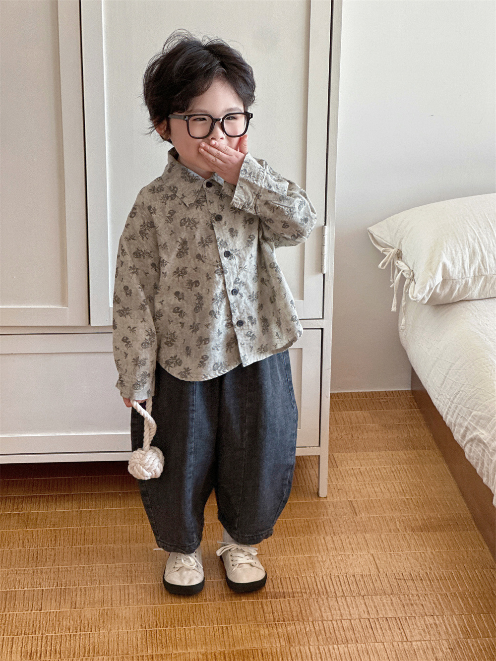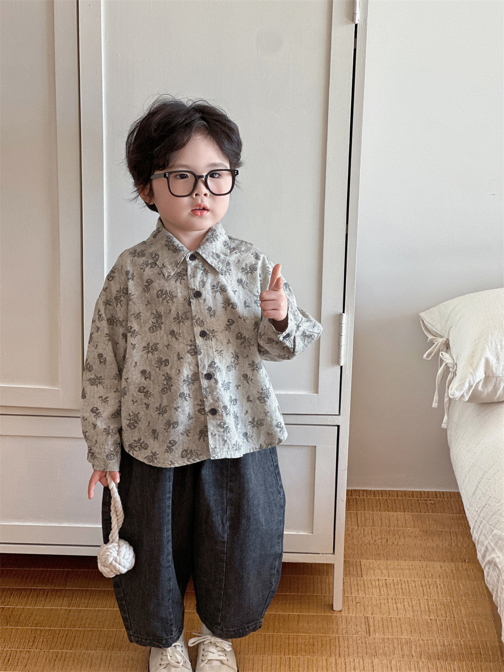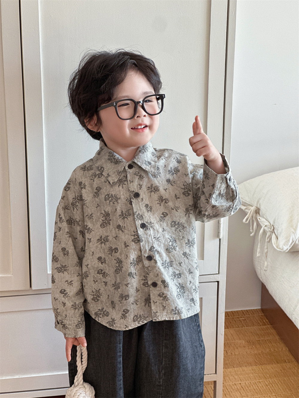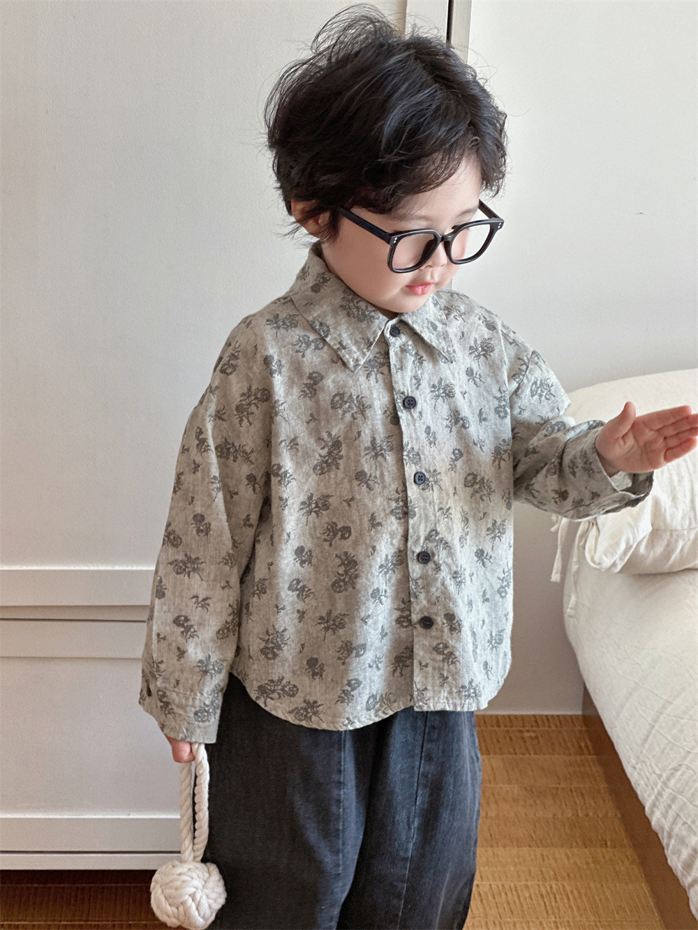 몽테뉴 아동복 봄과 가을 문학 스타일 작은 꽃 씻은 대마 코튼 셔츠 새 스타일 캐주얼 올매치 라이닝 소년 소녀스토어 가기