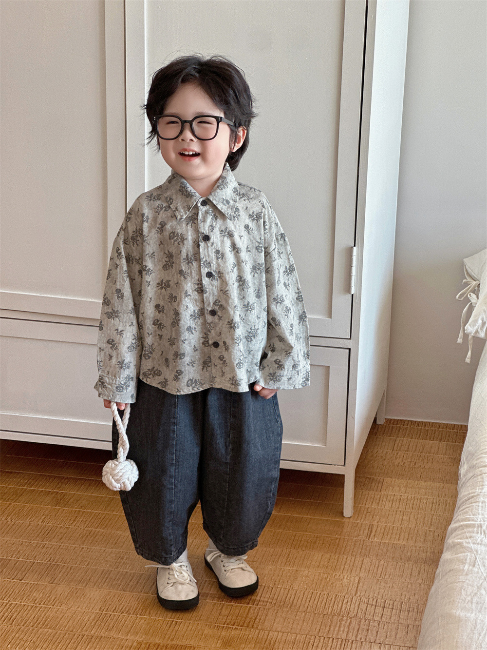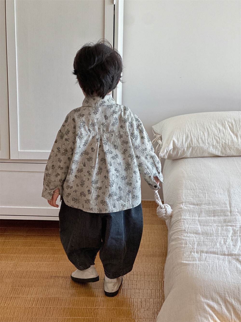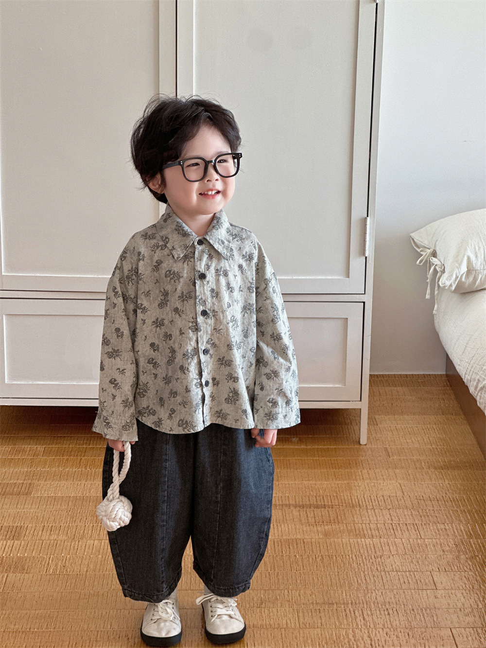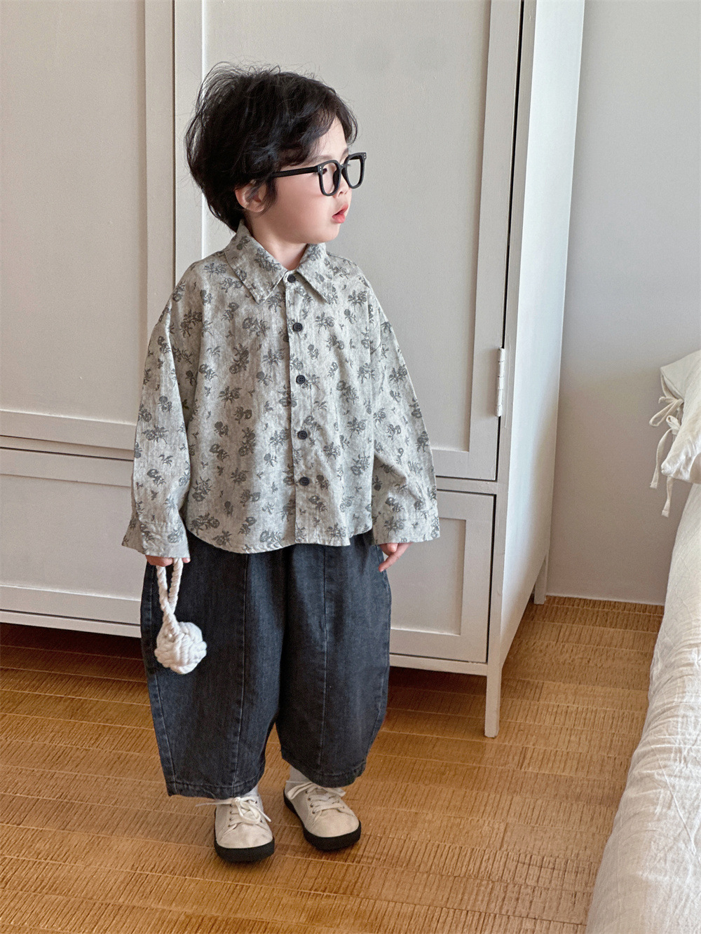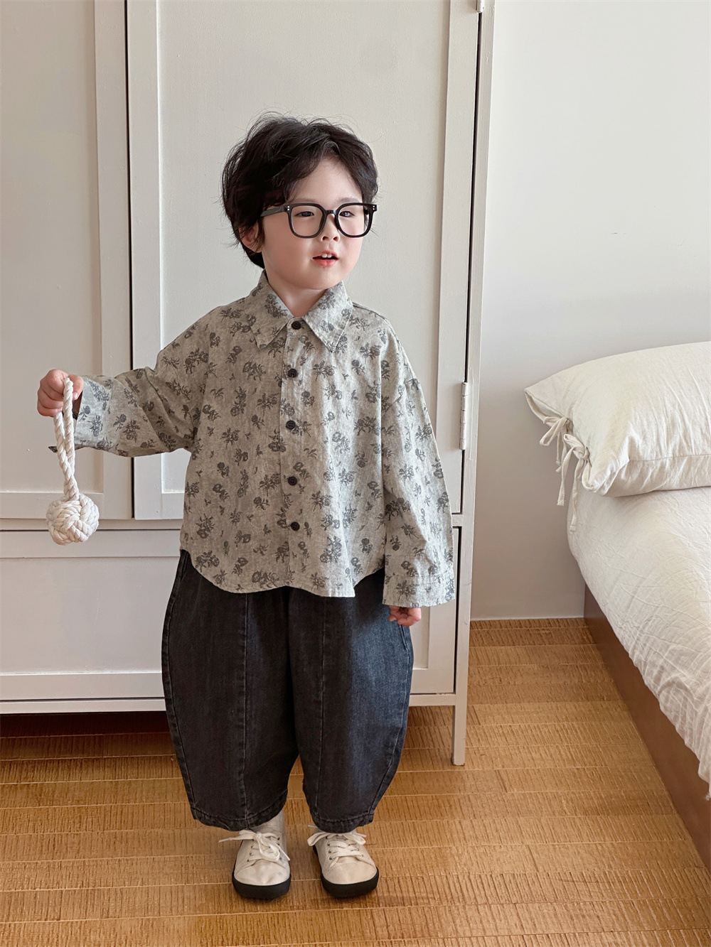 몽테뉴 아동복 봄과 가을 문학 스타일 작은 꽃 씻은 대마 코튼 셔츠 새 스타일 캐주얼 올매치 라이닝 소년 소녀스토어 가기