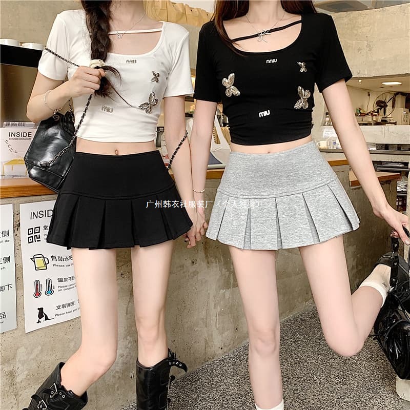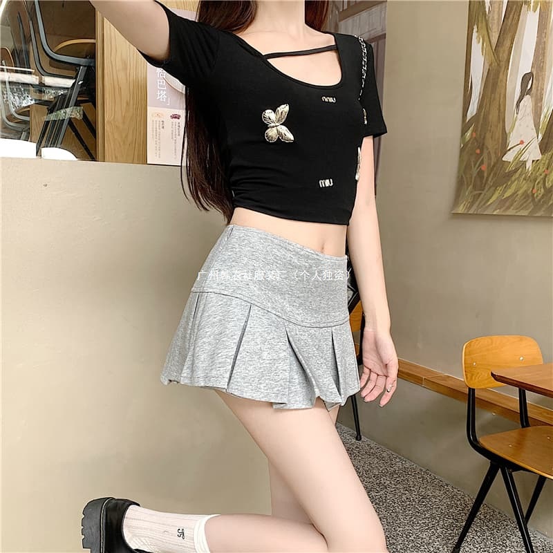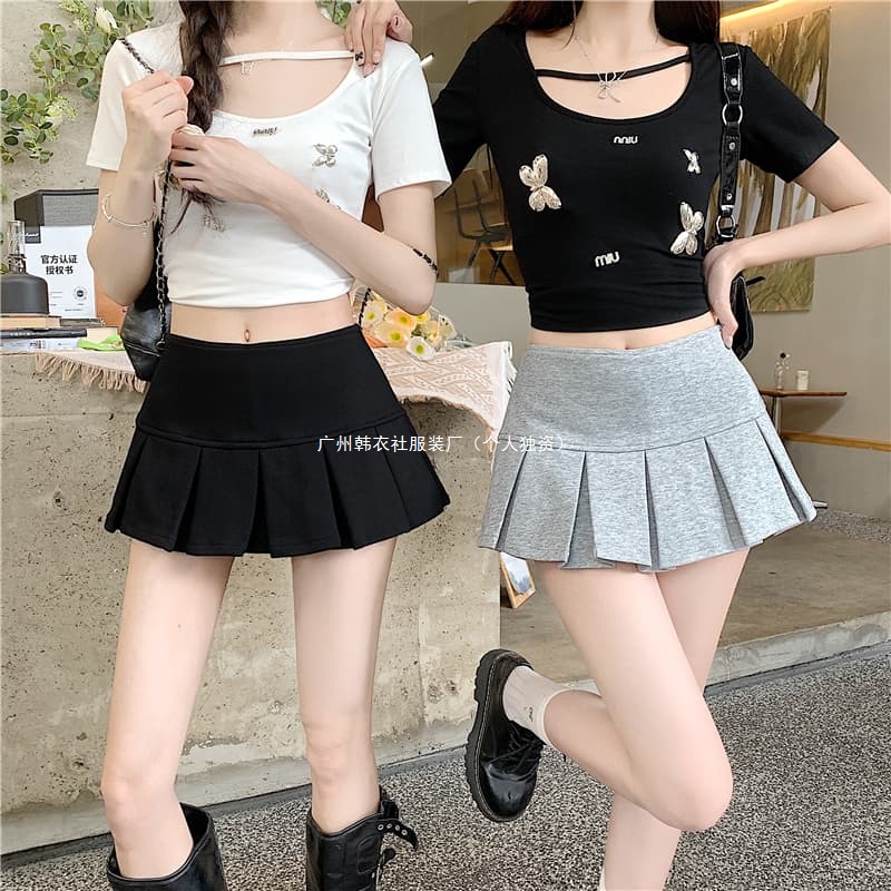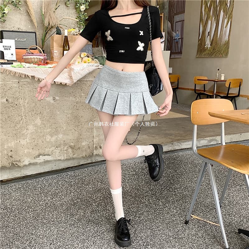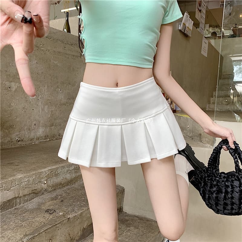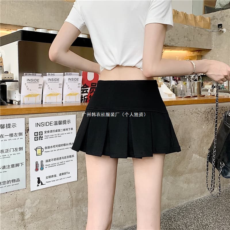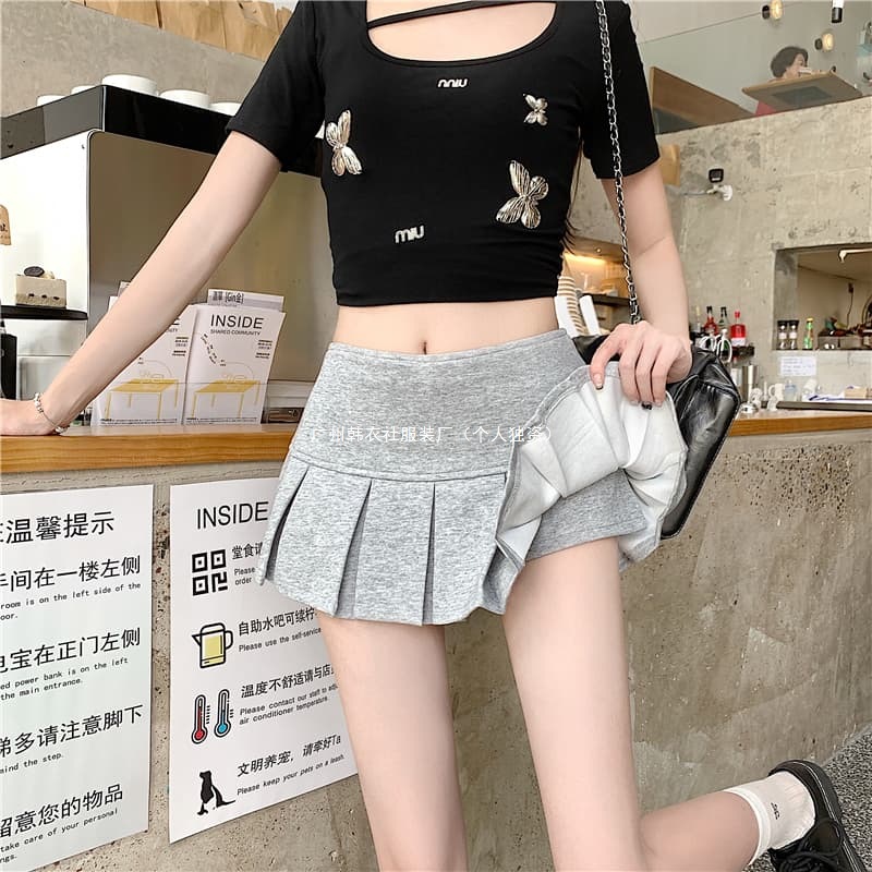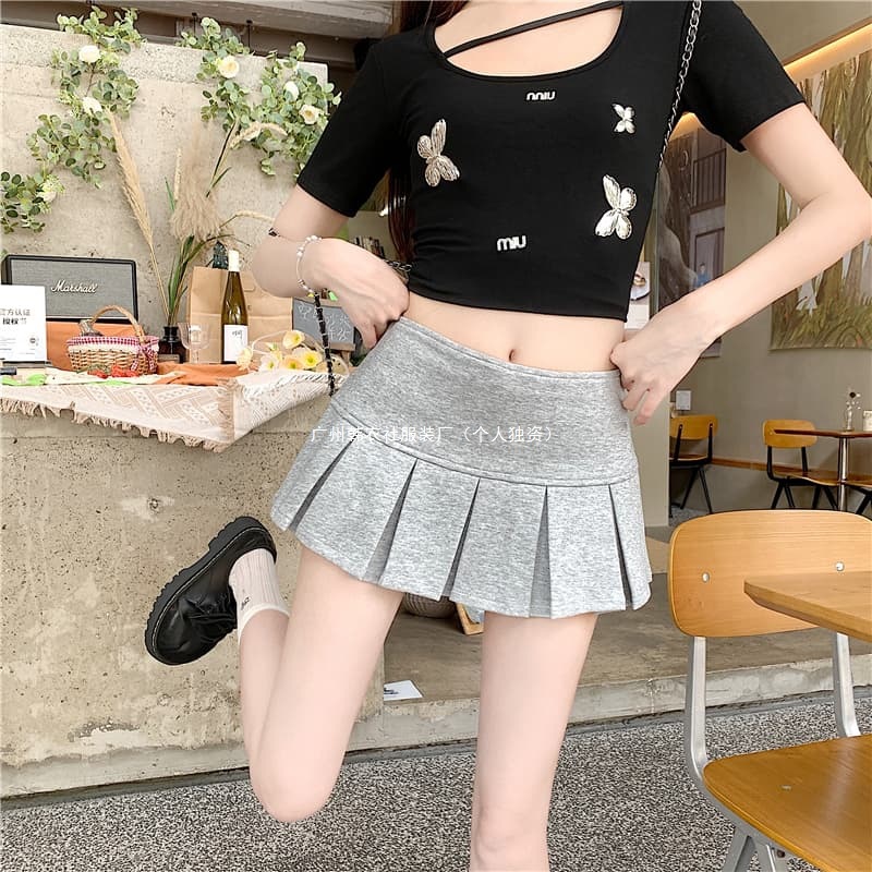 모닝 칼라 새로운 여성 미국 스타일의 낮은 허리 A 라인 스커트 순수한 회색 주름 스포츠 안티 워킹 스커트스토어 가기