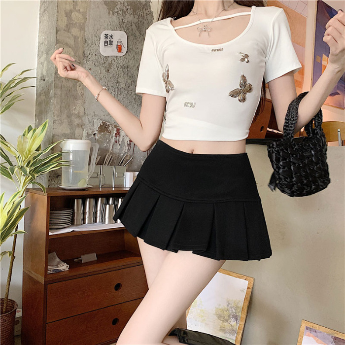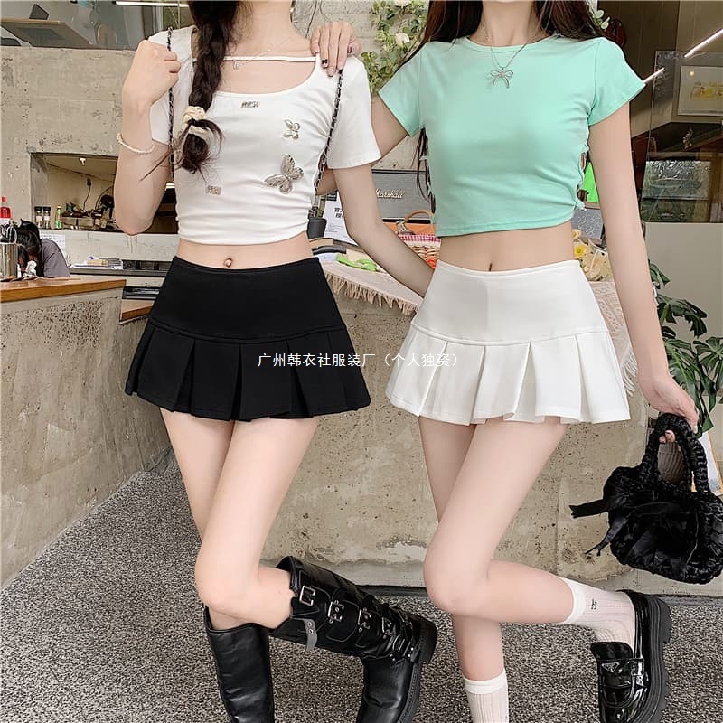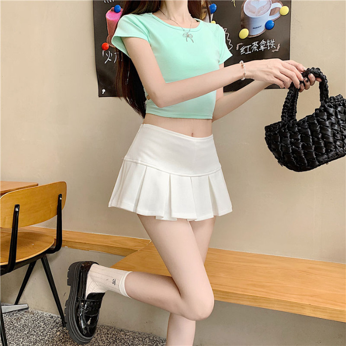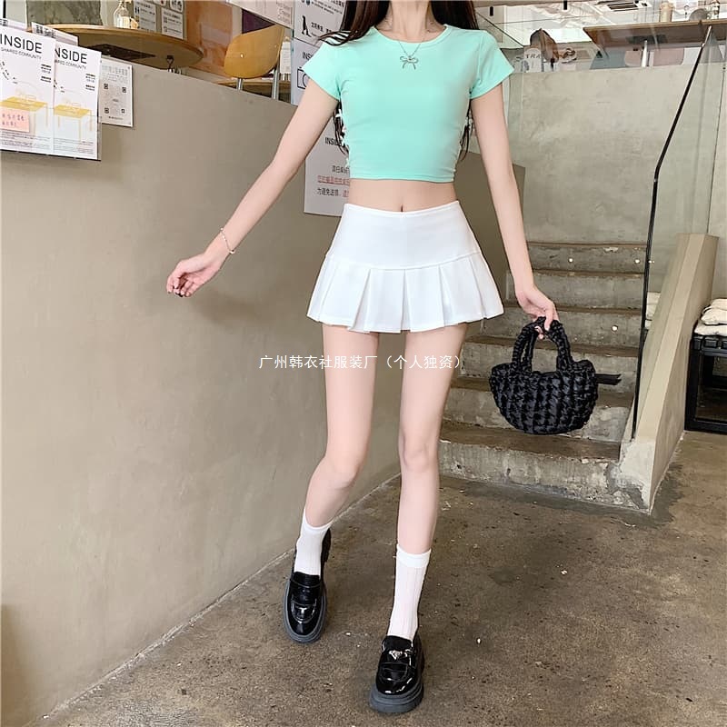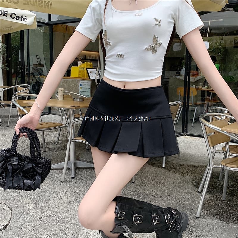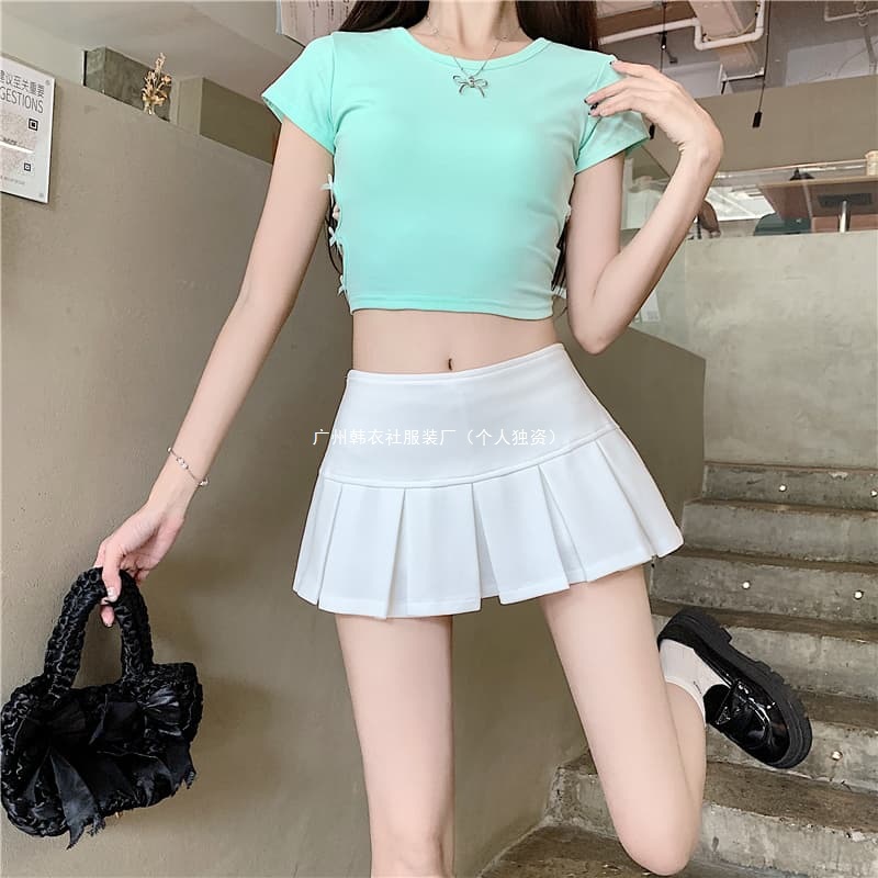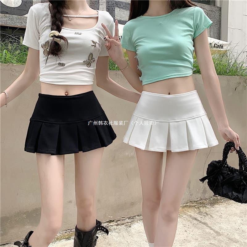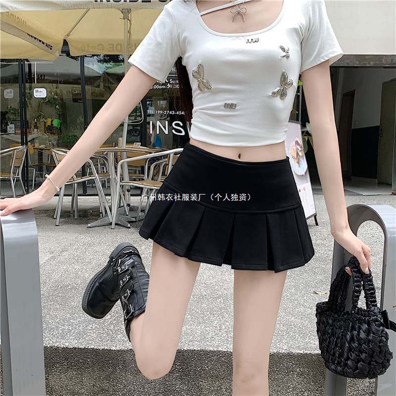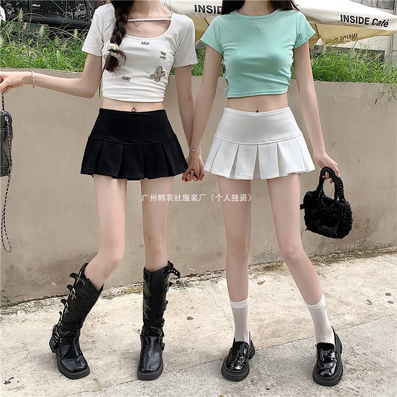 모닝 칼라 새로운 여성 미국 스타일의 낮은 허리 A 라인 스커트 순수한 회색 주름 스포츠 안티 워킹 스커트스토어 가기