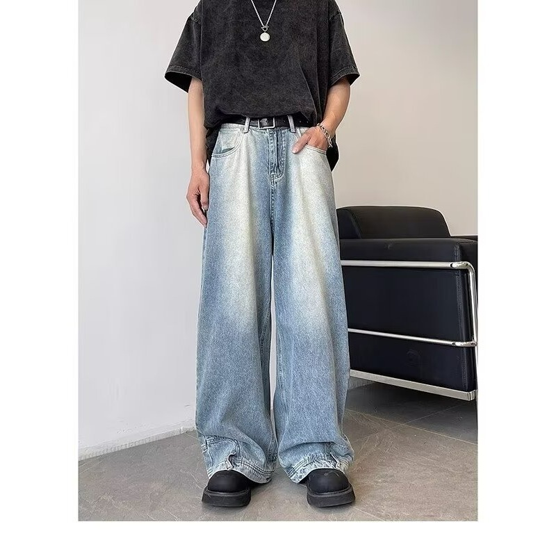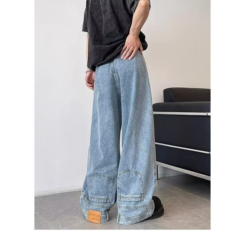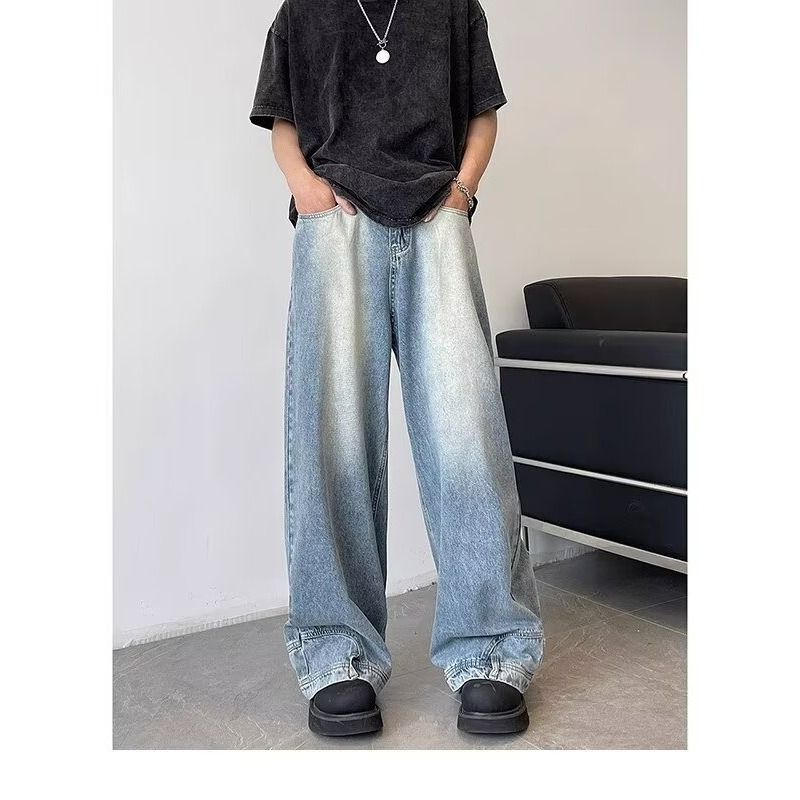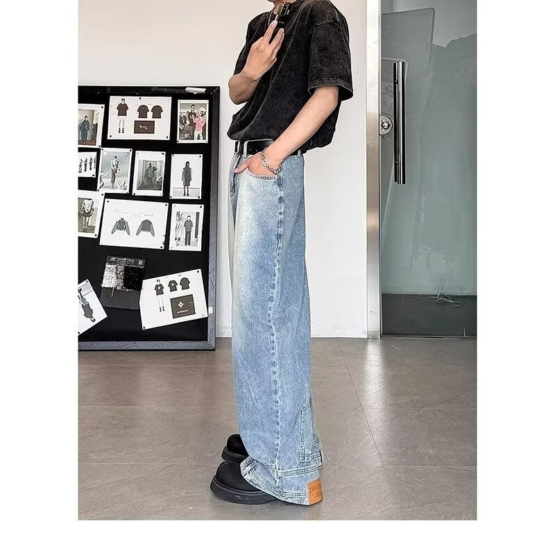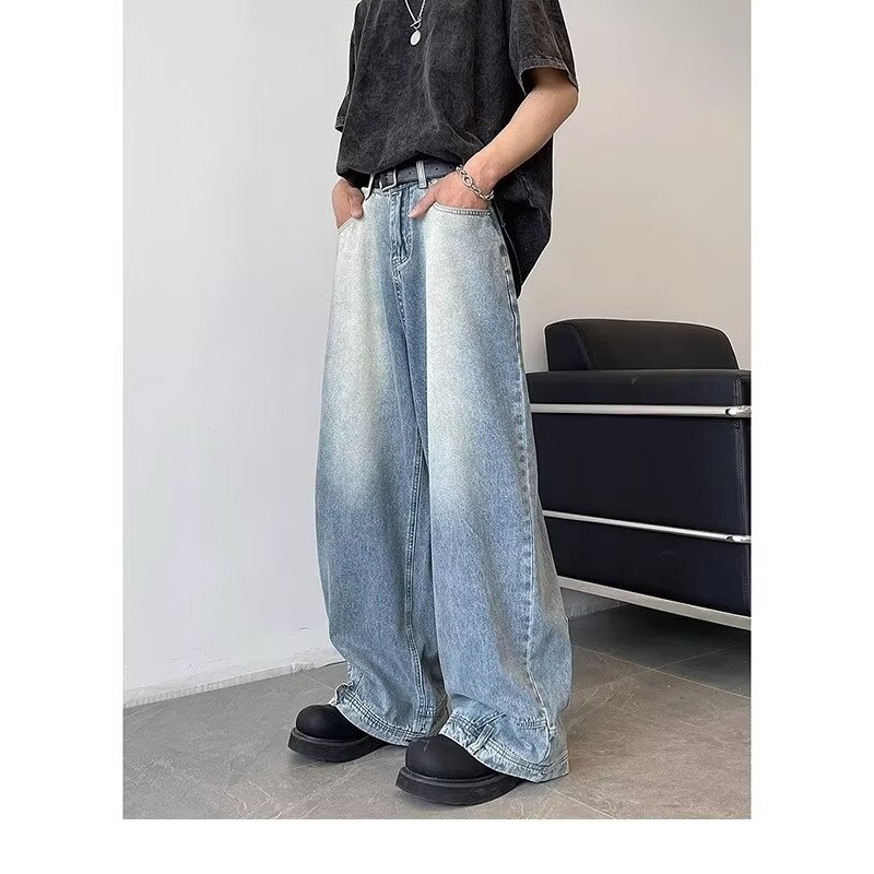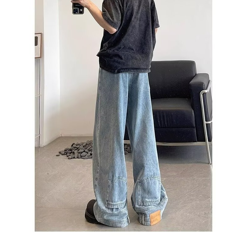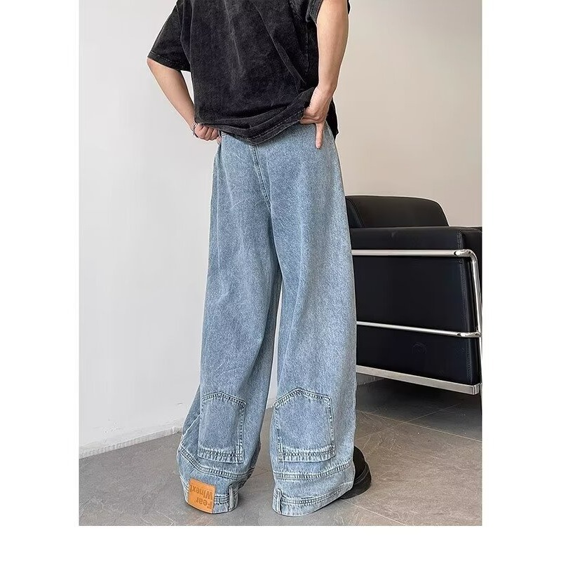 아메리칸 스타일 레트로 디자인 센스 와이드 레그 청바지 남성용 뉴 마이크로 라 루즈 플러스 사이즈 라이트 컬러 트렌디 브랜드 트렌디 긴 바지스토어 가기