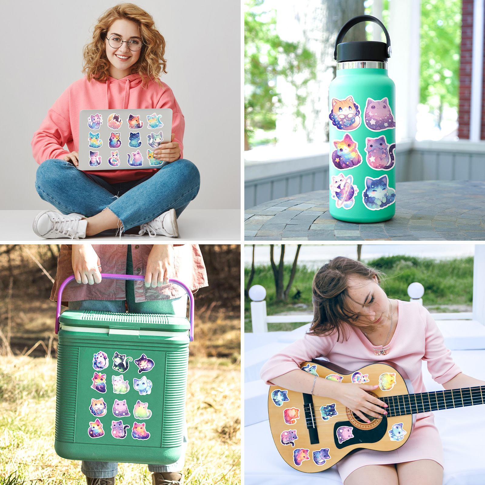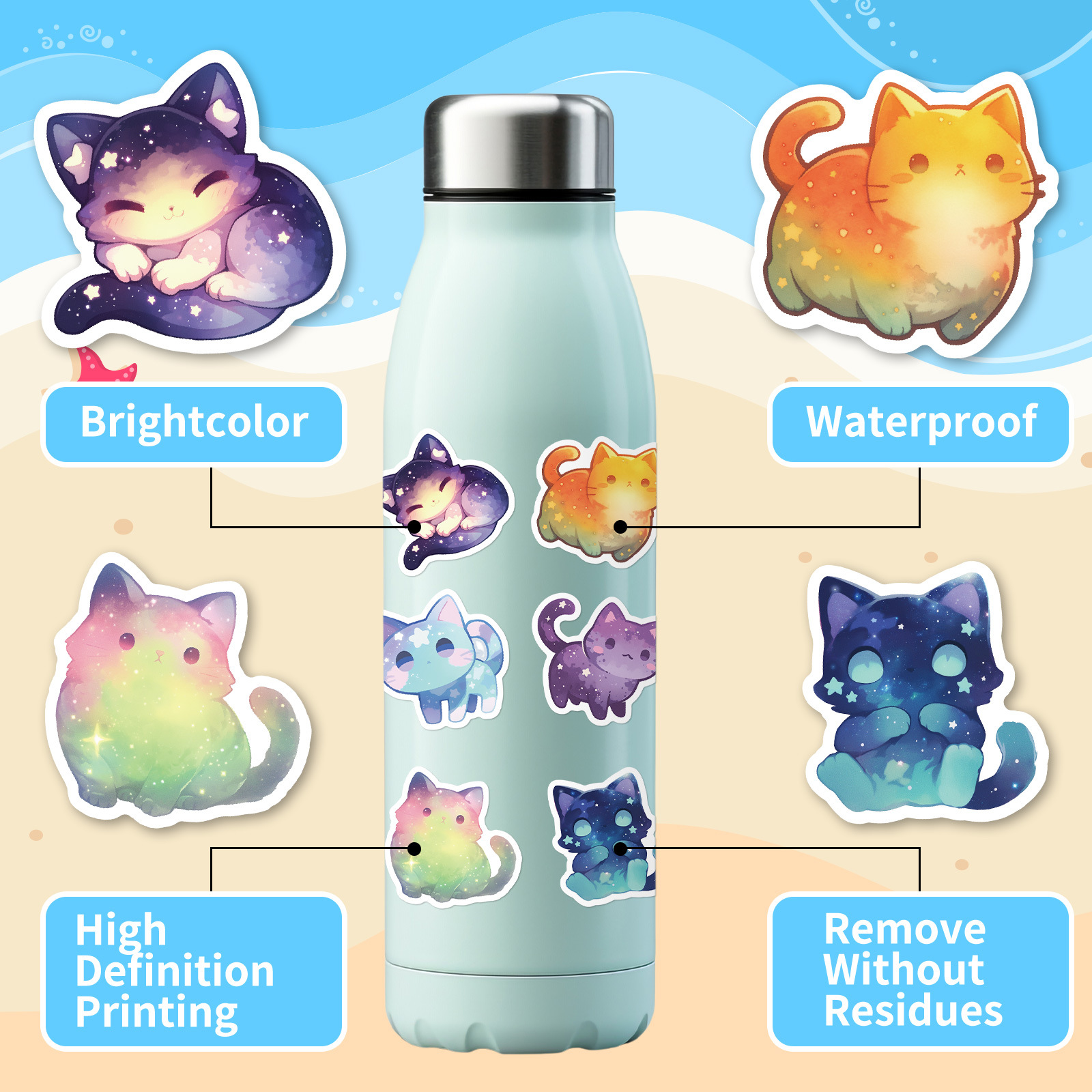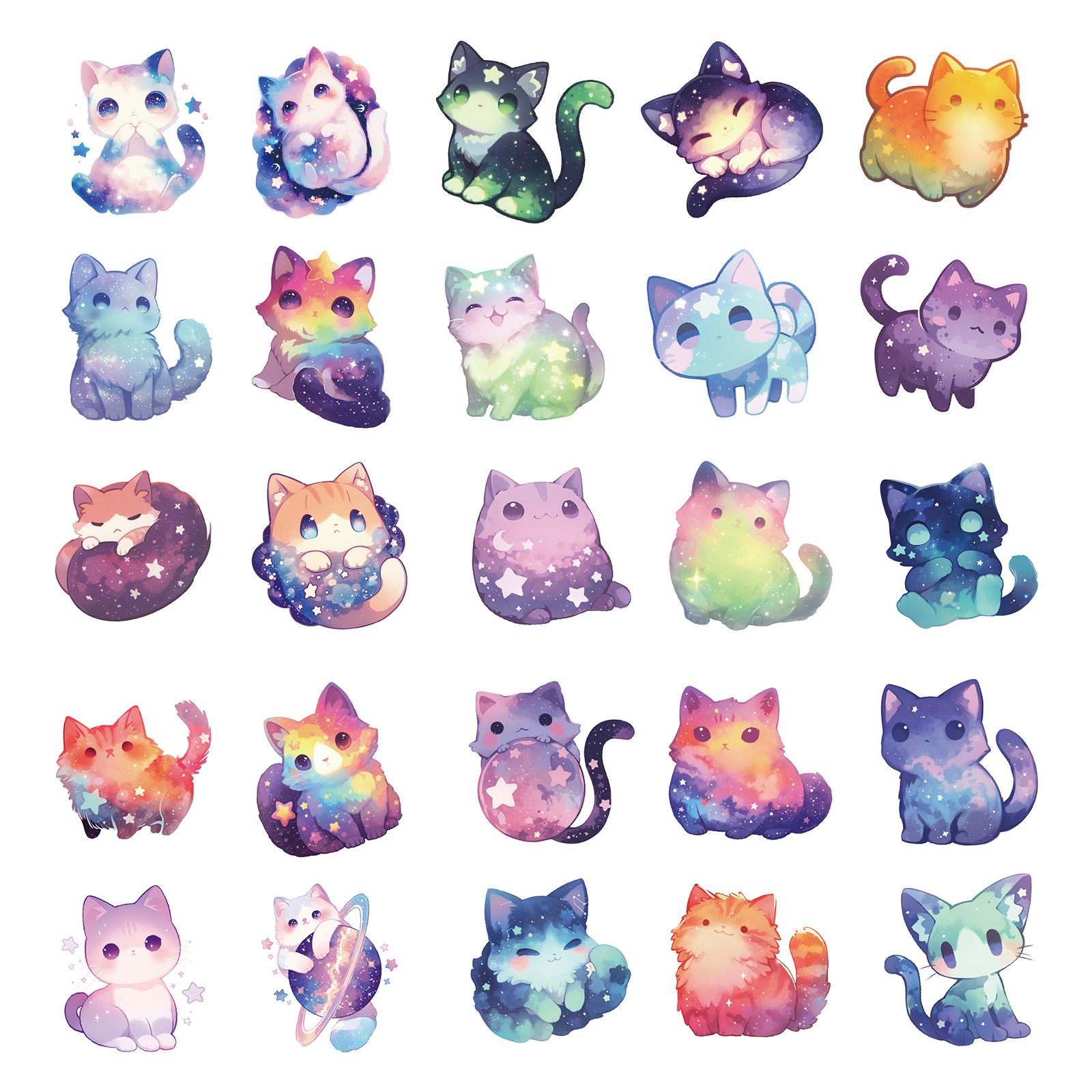 50 귀여운 만화 꿈 스타 고양이 창조적 인 스티커 장식 수하물 문구 물 컵 컴퓨터 방수 스티커스토어 가기