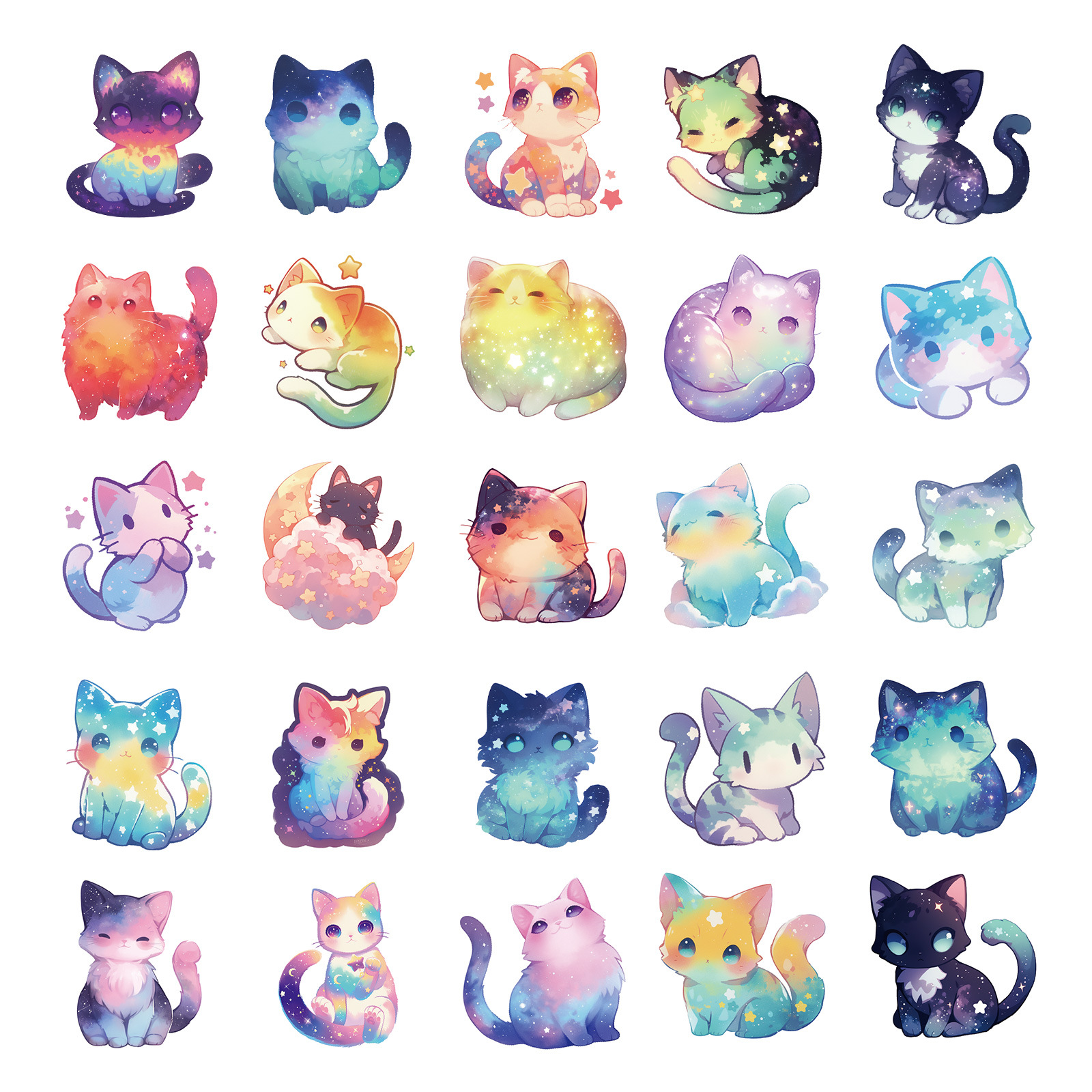 50 귀여운 만화 꿈 스타 고양이 창조적 인 스티커 장식 수하물 문구 물 컵 컴퓨터 방수 스티커