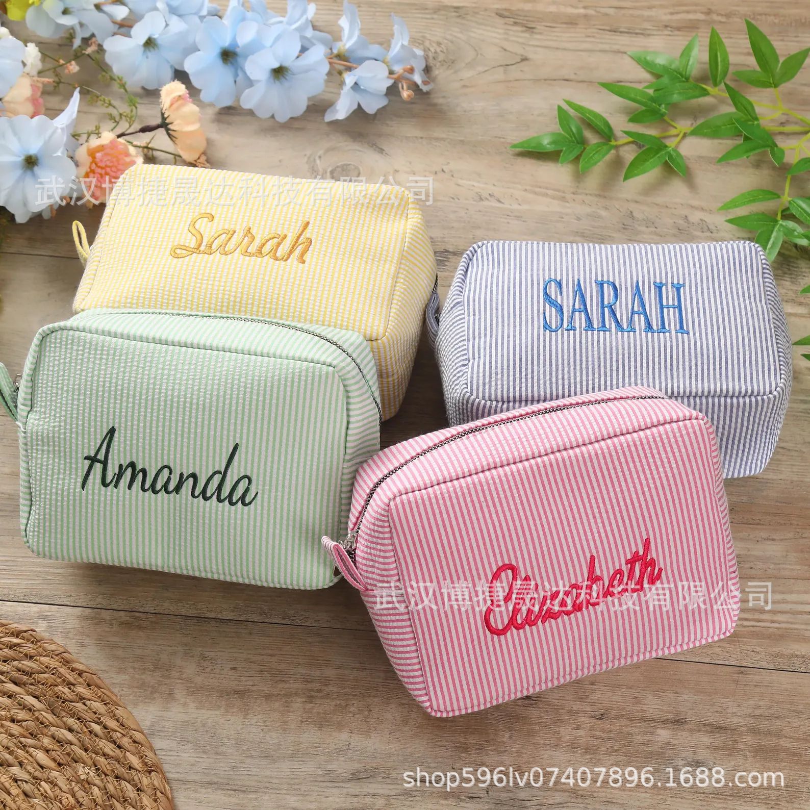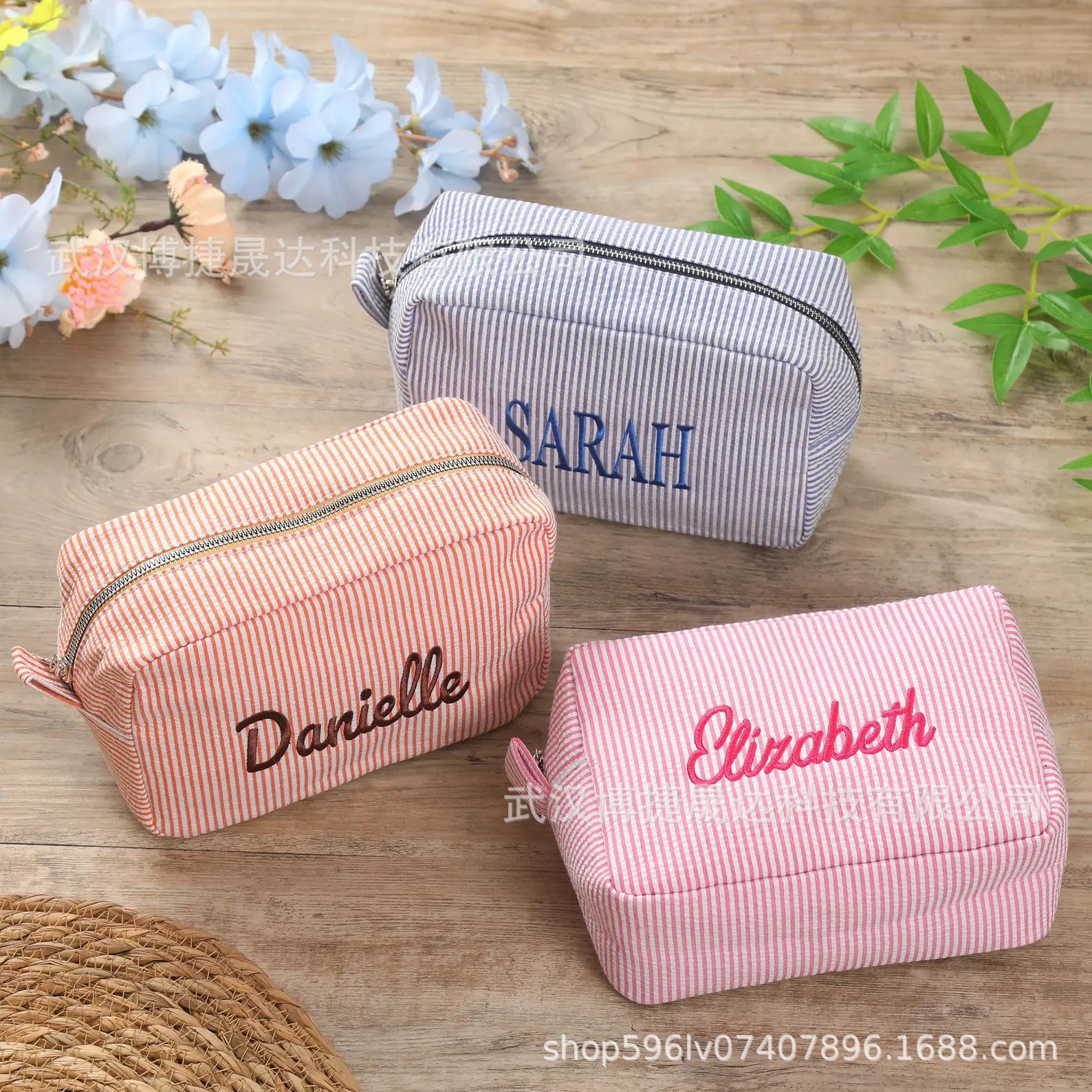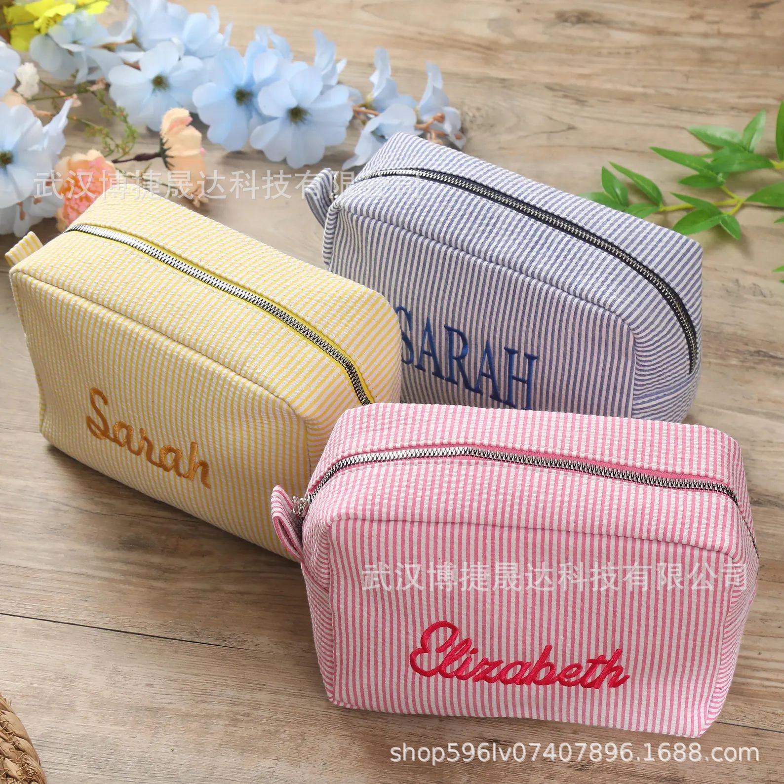 Etsy 맞춤형 자수 seersucker 화장품 가방 휴대용 세척 보관 여행 출장