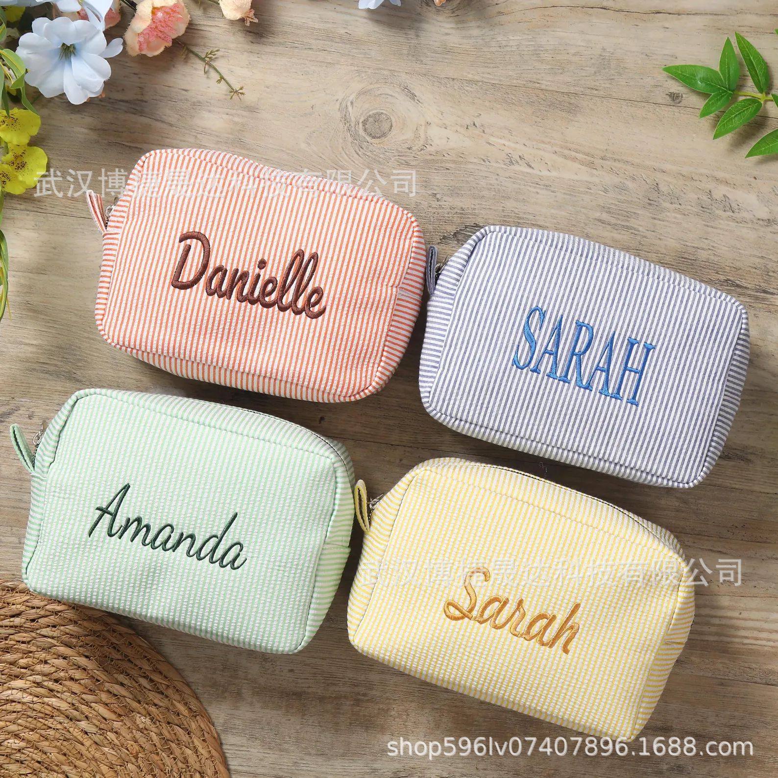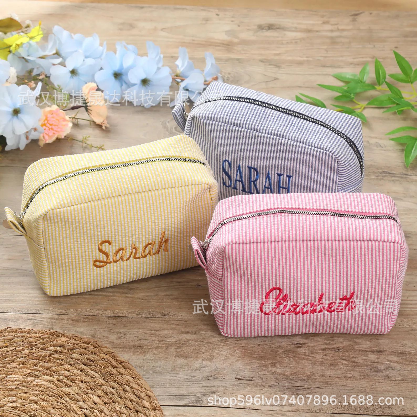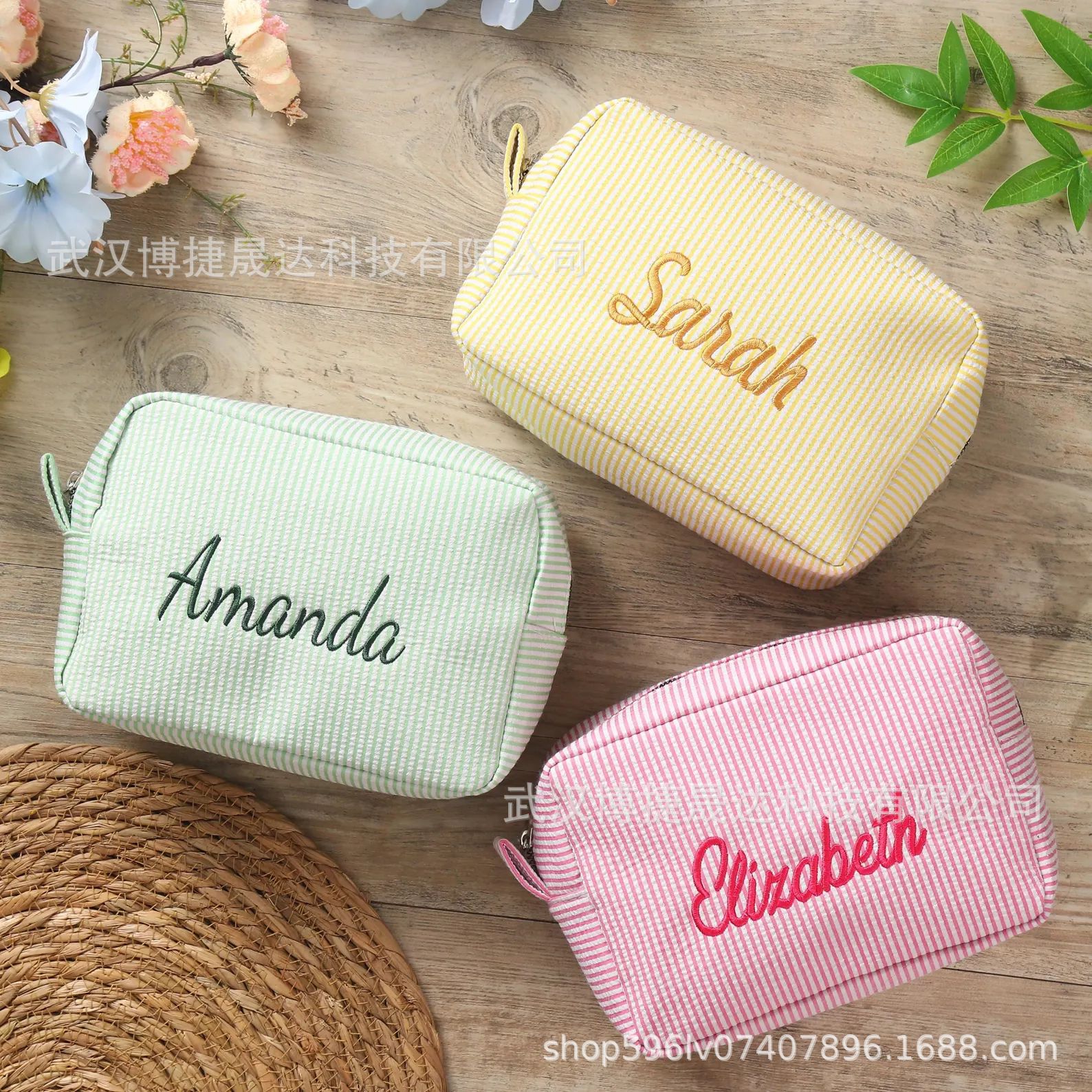 Etsy 맞춤형 자수 seersucker 화장품 가방 휴대용 세척 보관 여행 출장