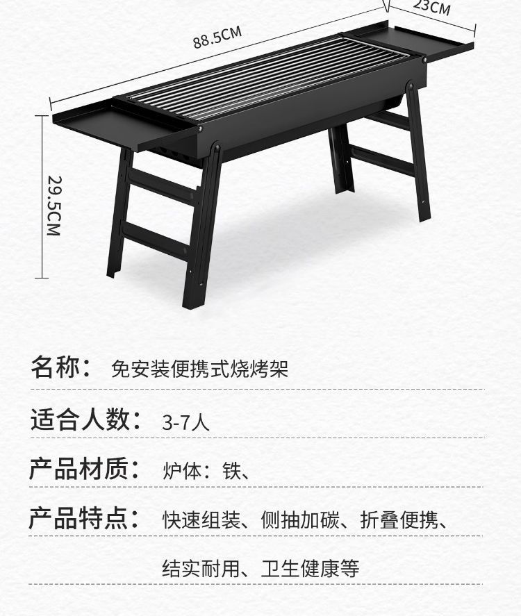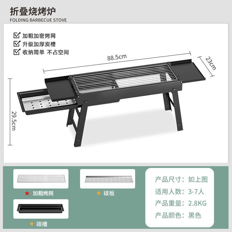 바베큐 오븐 바베큐 야외 숯 선반 가정용 바베큐 고기 당기기 숯 트로프 휴대용 접이식 스토브